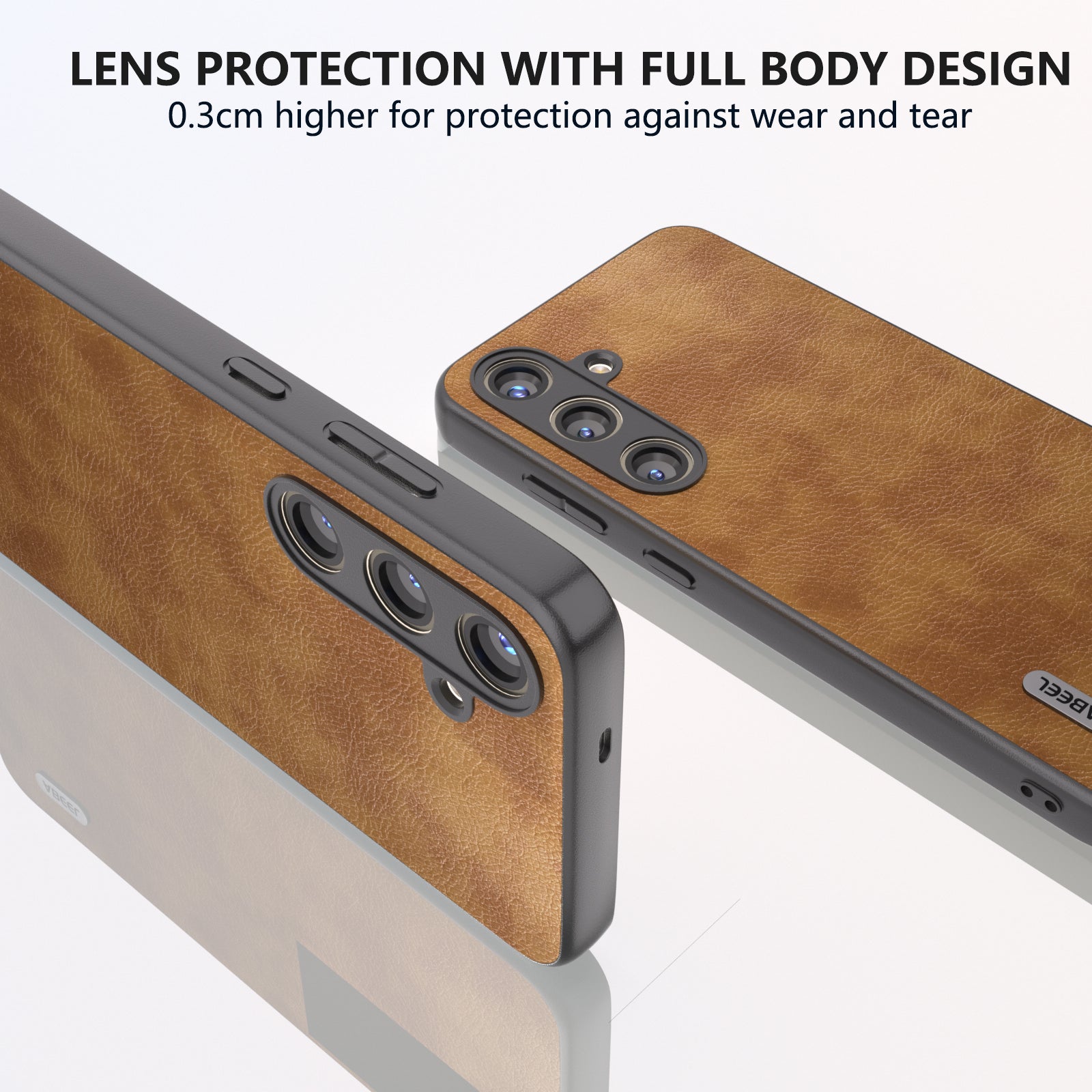 ABEEL For Samsung Galaxy S24 Retro Litchi Texture Cover PU Leather Camera Protection Phone Case - Brown