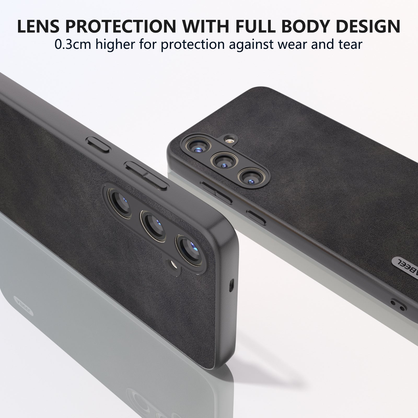 ABEEL For Samsung Galaxy S24 Shockproof Phone Case Leather Coated TPU+PC Cover - Black