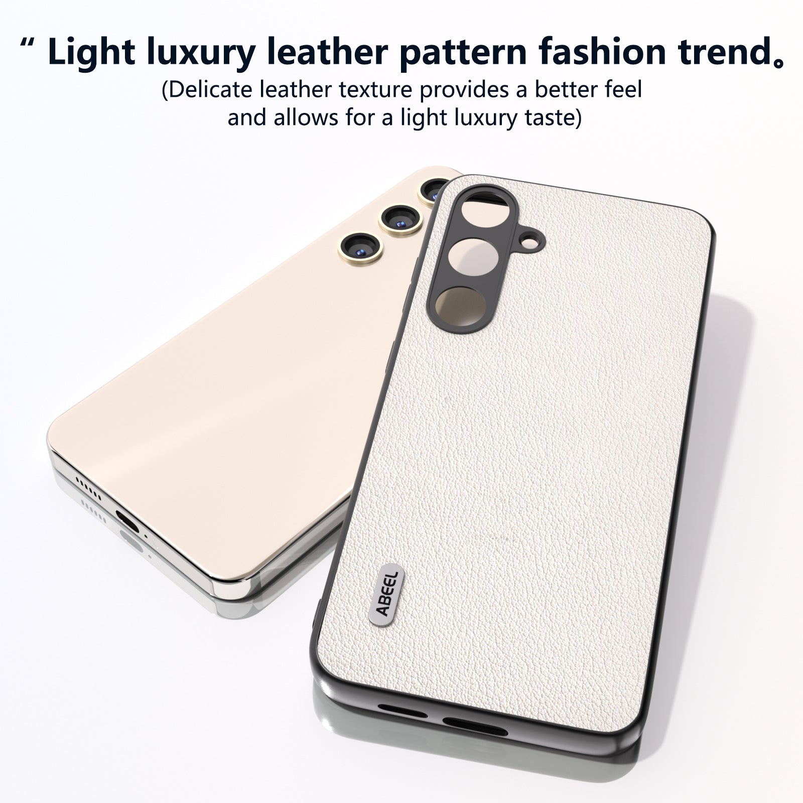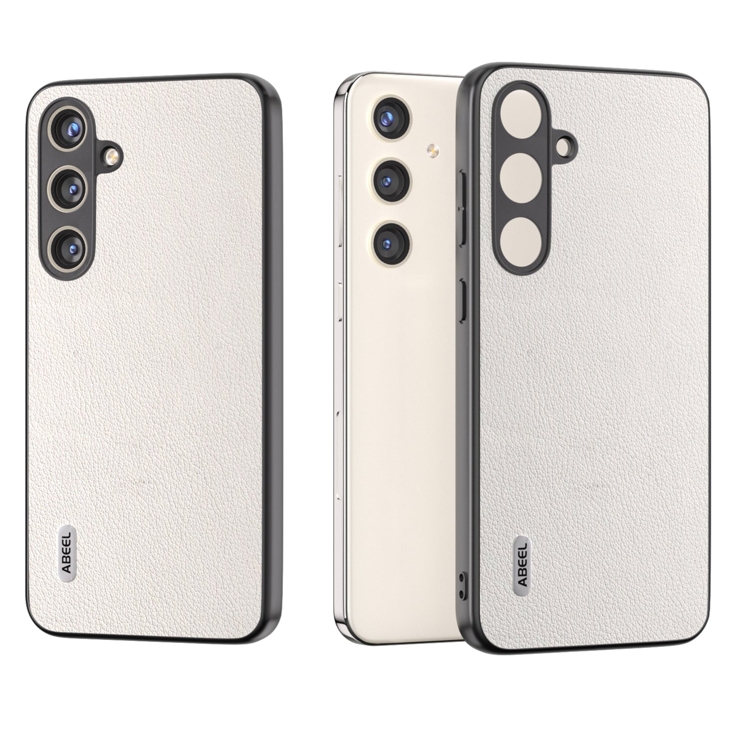 ABEEL For Samsung Galaxy S24+ Textured Phone Case Genuine Cow Leather Cover Non-Slip - Grey