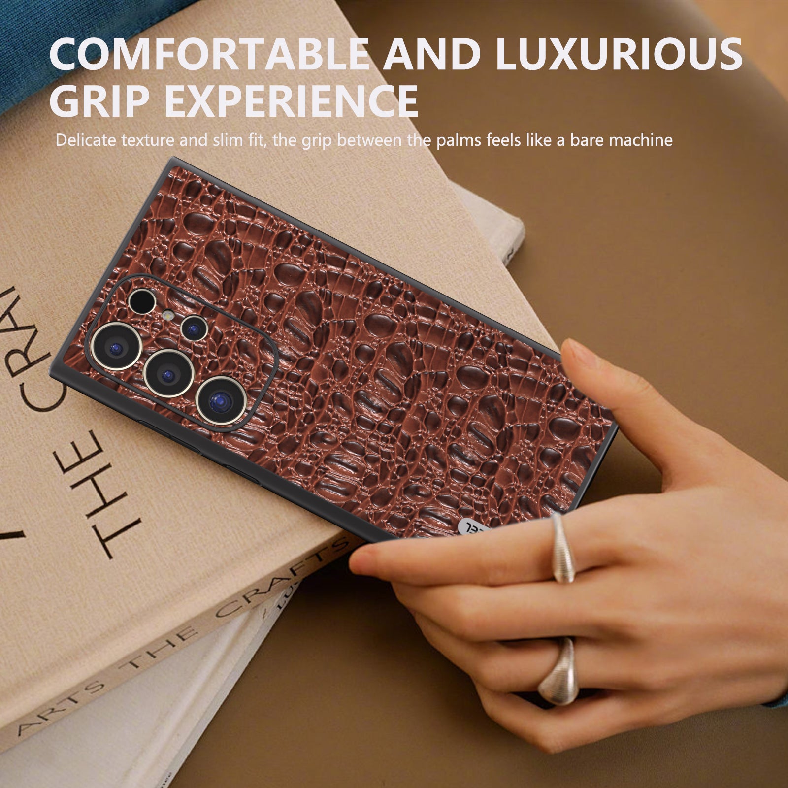 ABEEL For Samsung Galaxy S24 Ultra Case Canopy Texture Genuine Cow Leather Back Cover Camera Protection - Brown