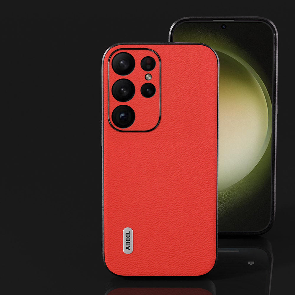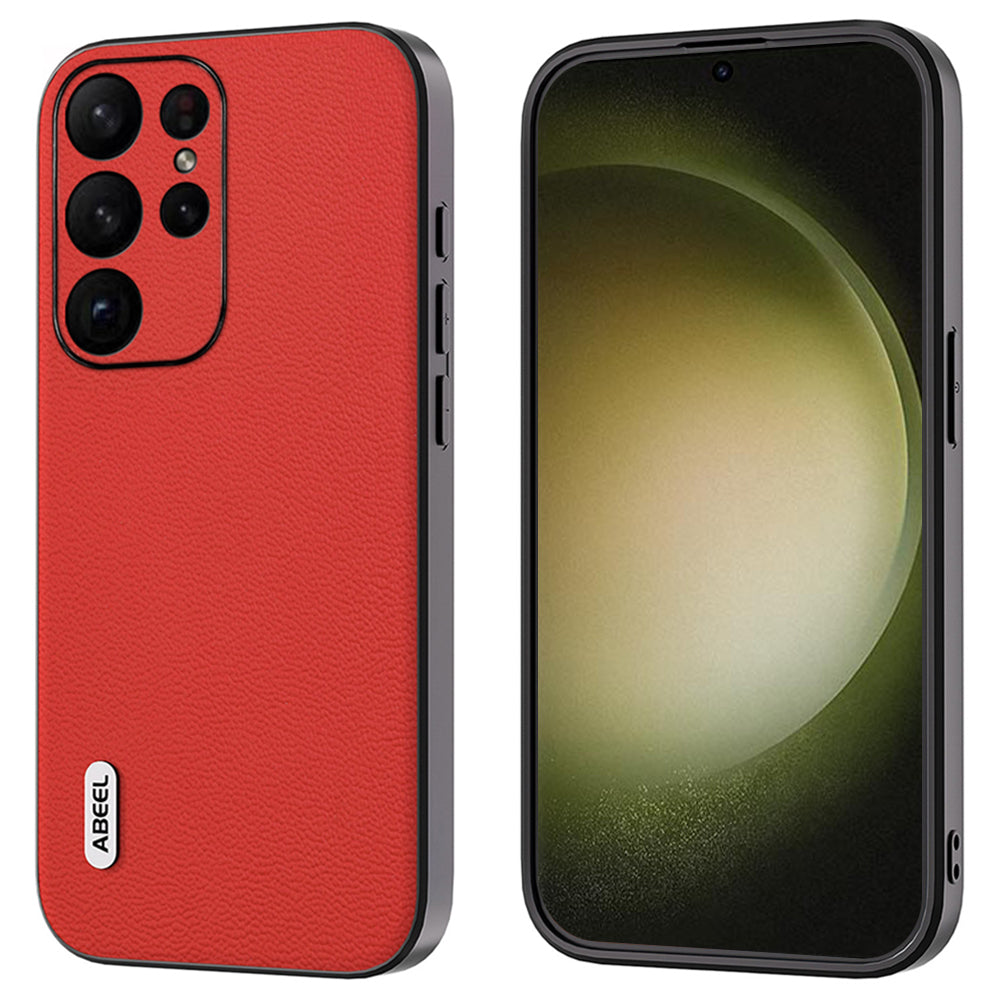 ABEEL For Samsung Galaxy S24 Ultra Case Genuine Cow Leather Litchi Texture Back Cover - Red