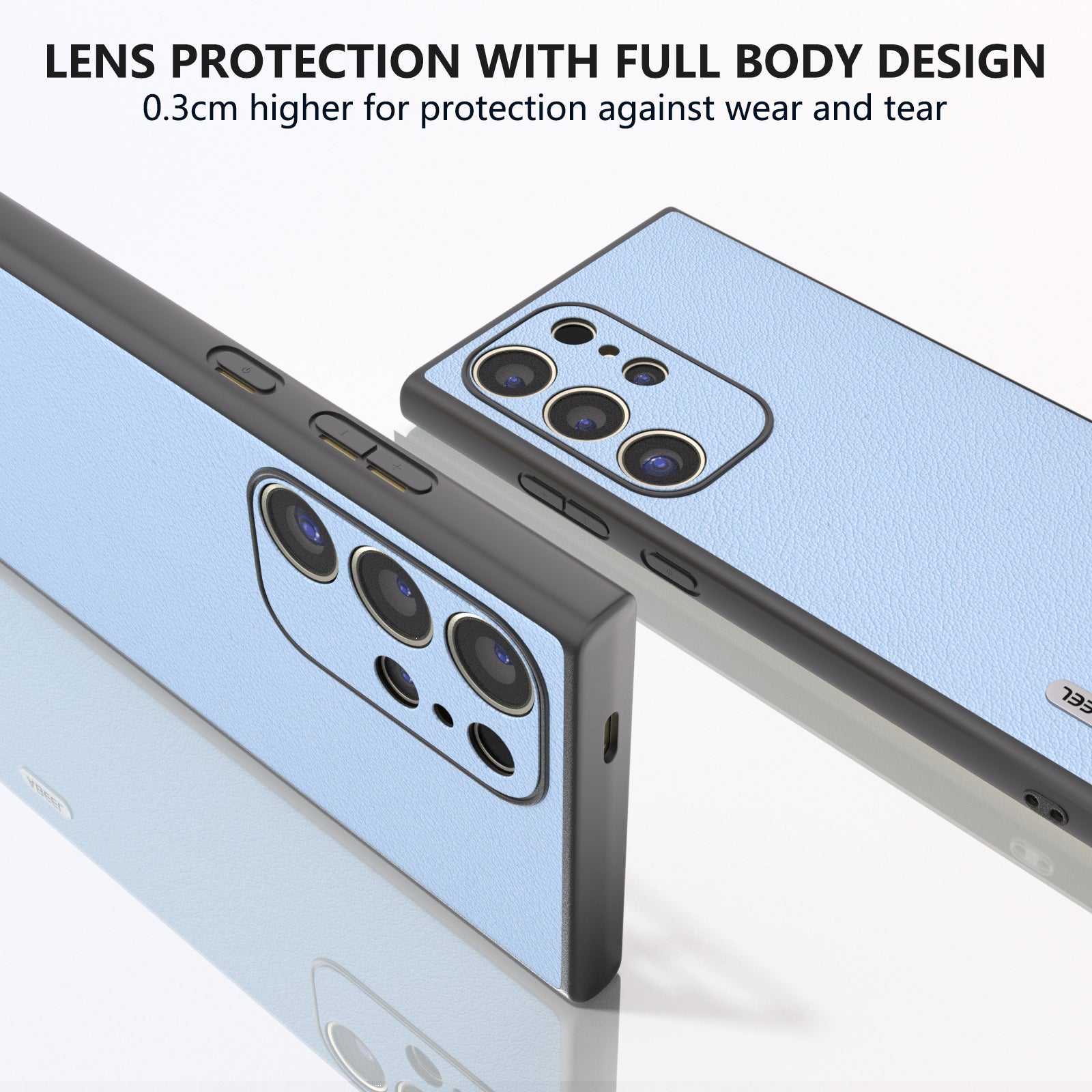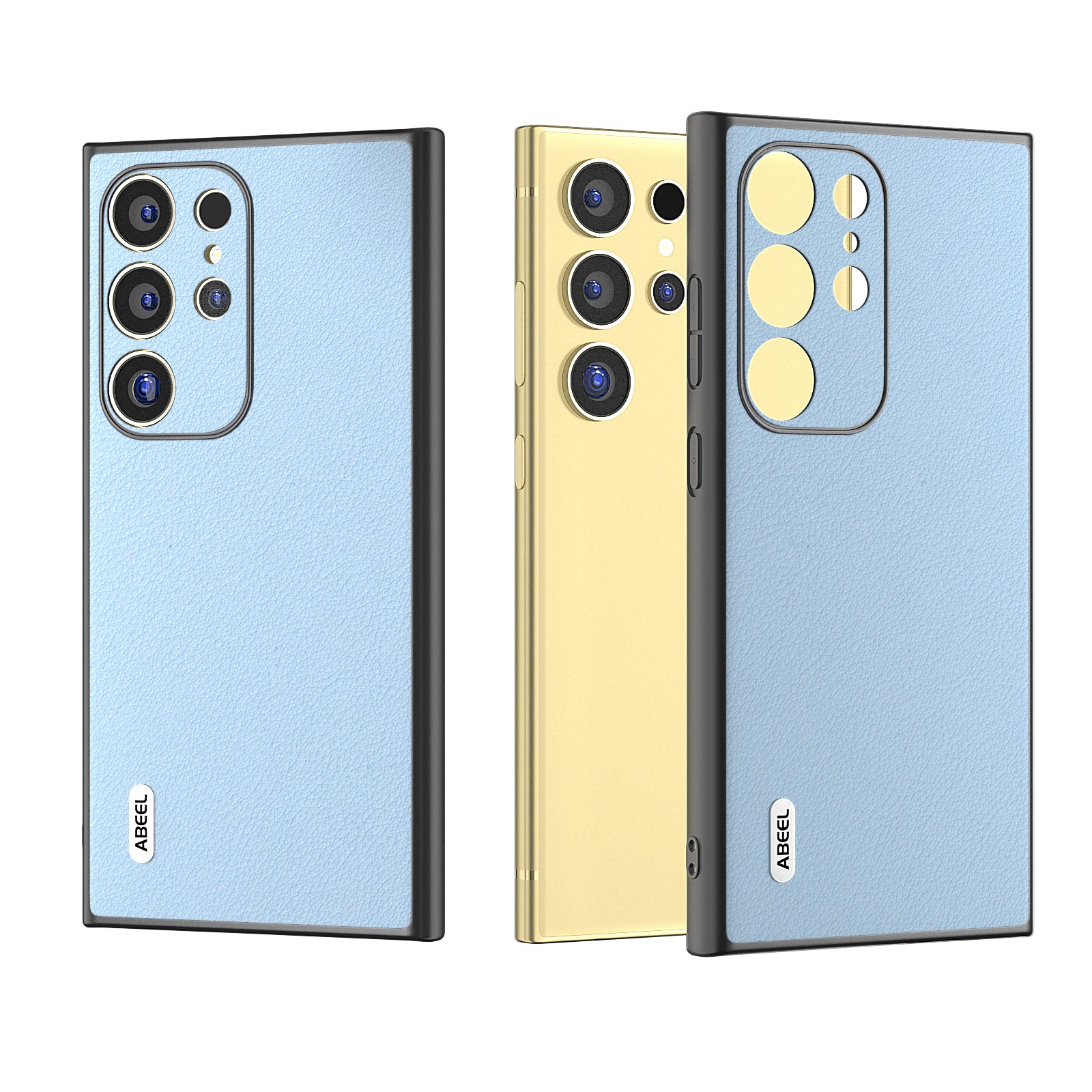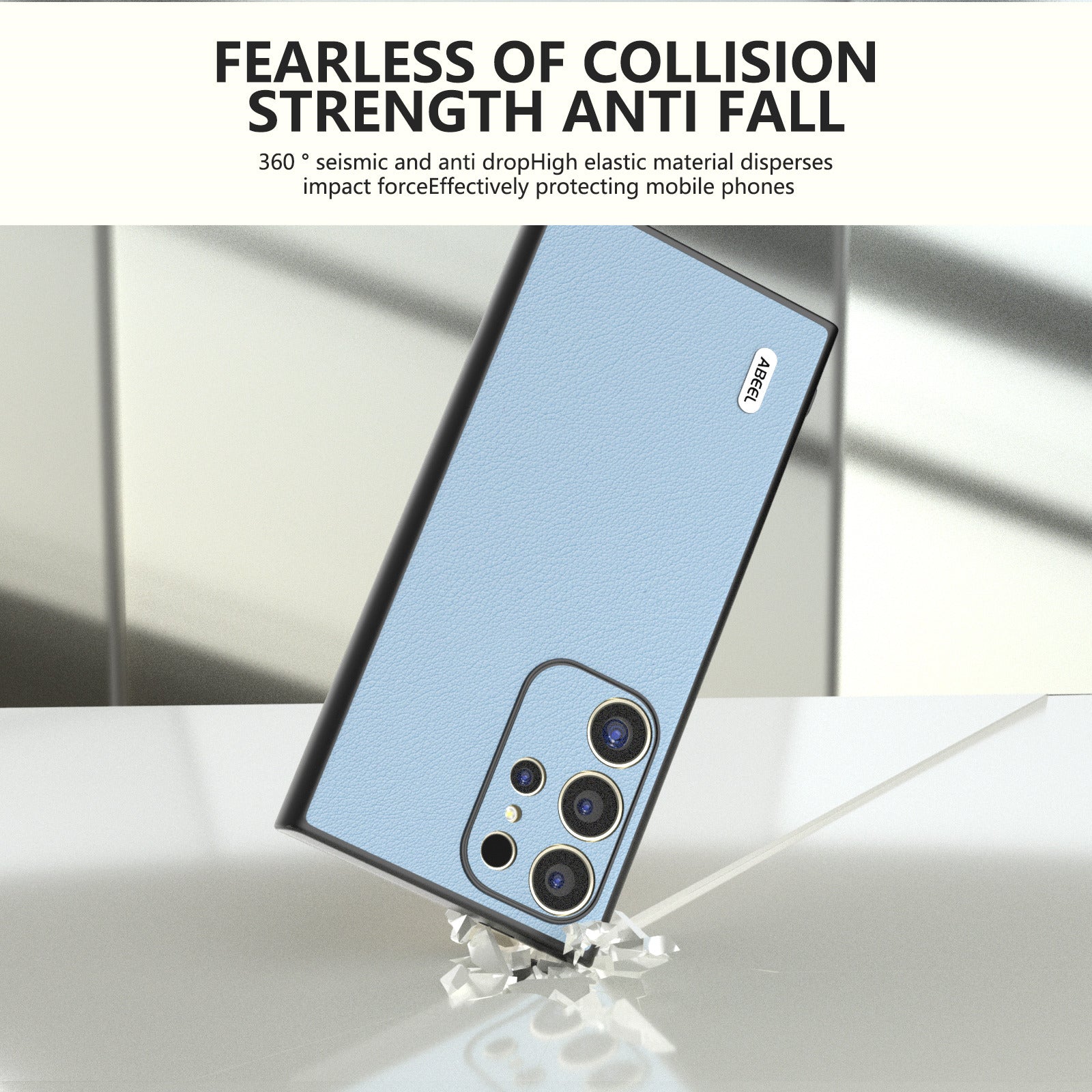 ABEEL For Samsung Galaxy S24 Ultra Case Textured Genuine Cow Leather Anti-Fingerprint Protective Cover - Blue