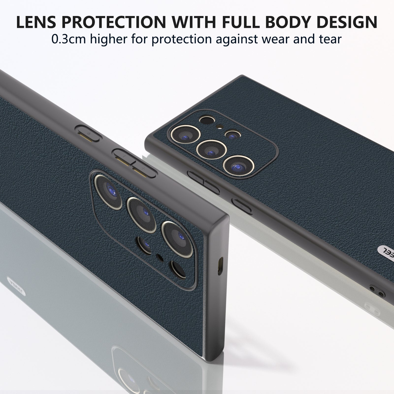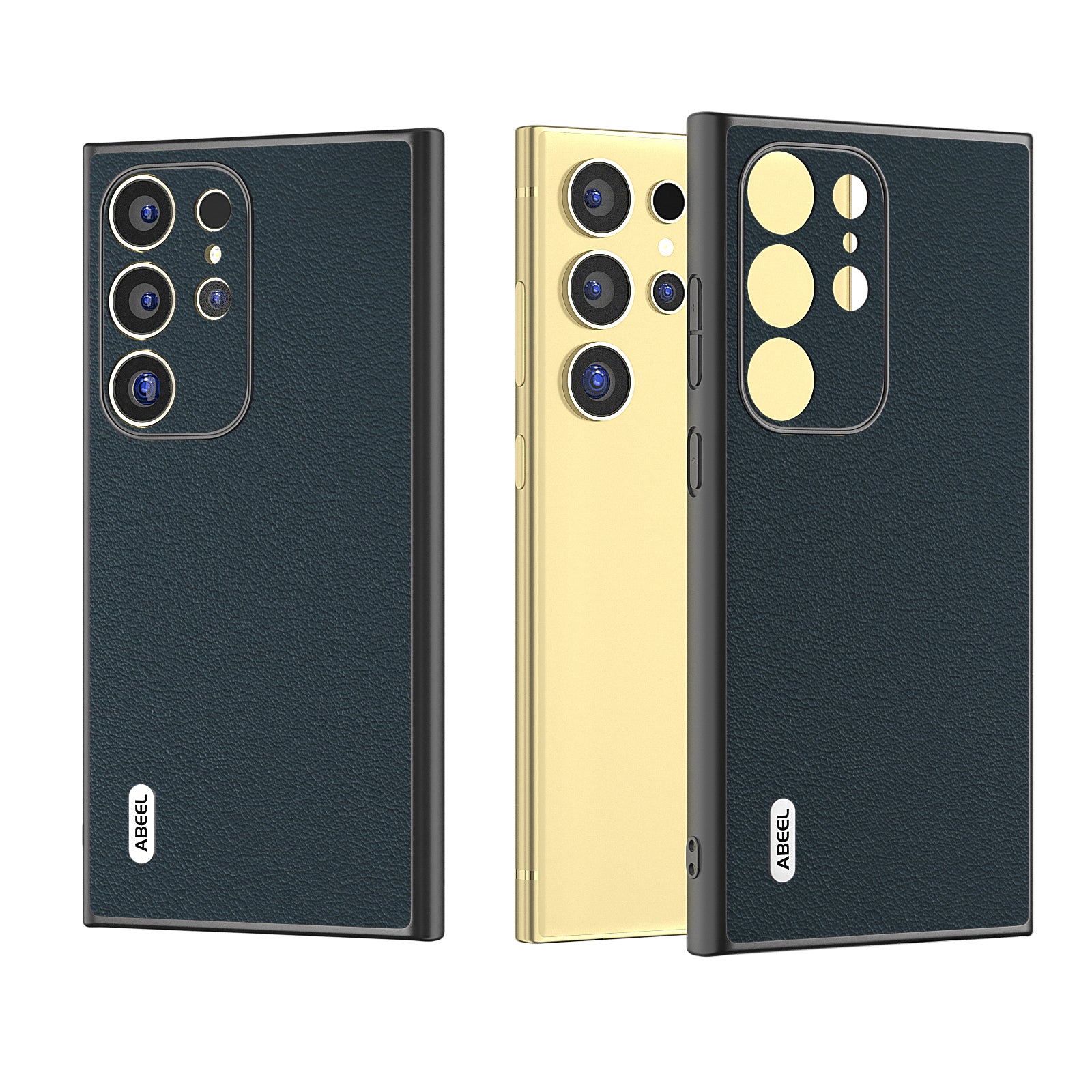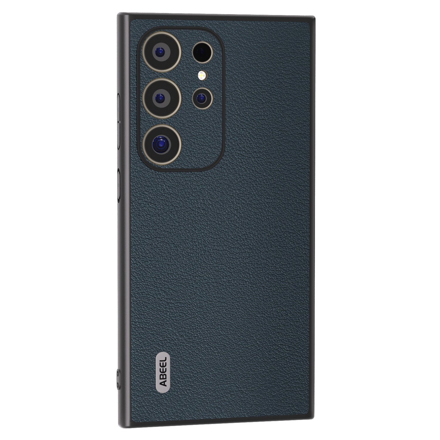 ABEEL For Samsung Galaxy S24 Ultra Case Textured Genuine Cow Leather Anti-Fingerprint Protective Cover - Green