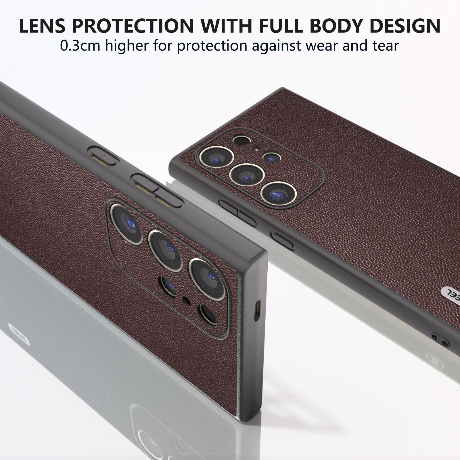 ABEEL For Samsung Galaxy S24 Ultra Phone Cover Bump Proof Genuine Cow Leather Classy Case - Coffee