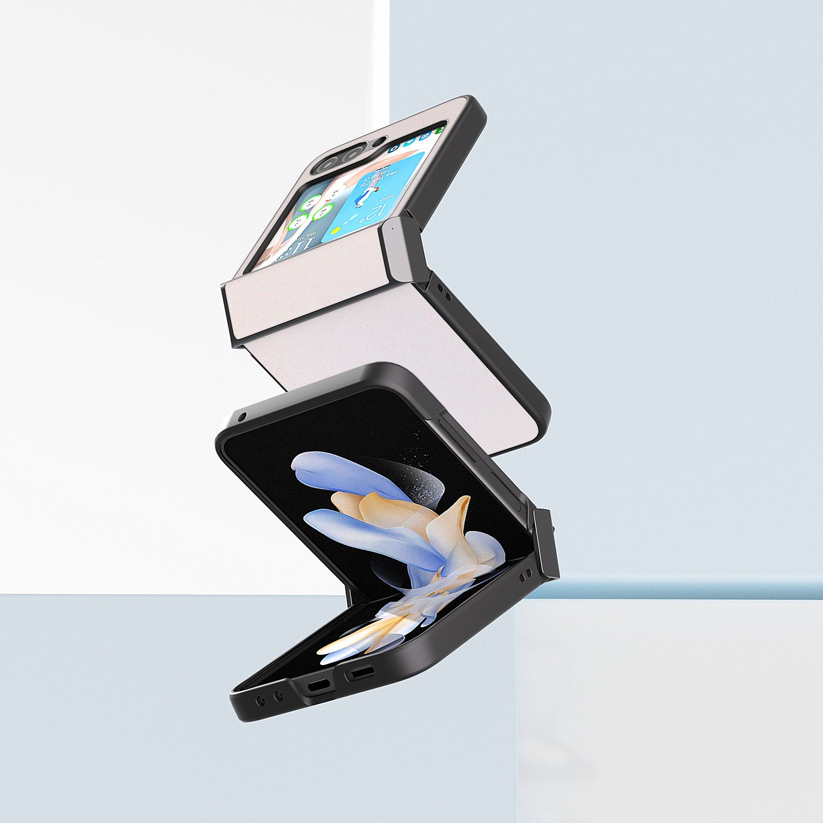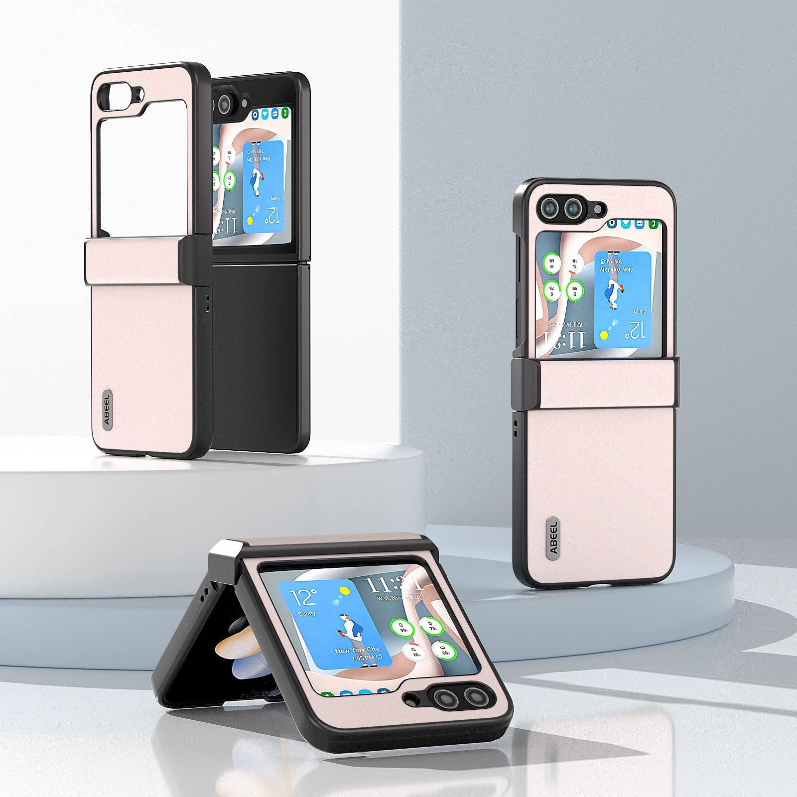 ABEEL For Samsung Galaxy Z Flip6 5G Case PU Leather+PC Glitter Phone Cover with Hinge Design - White