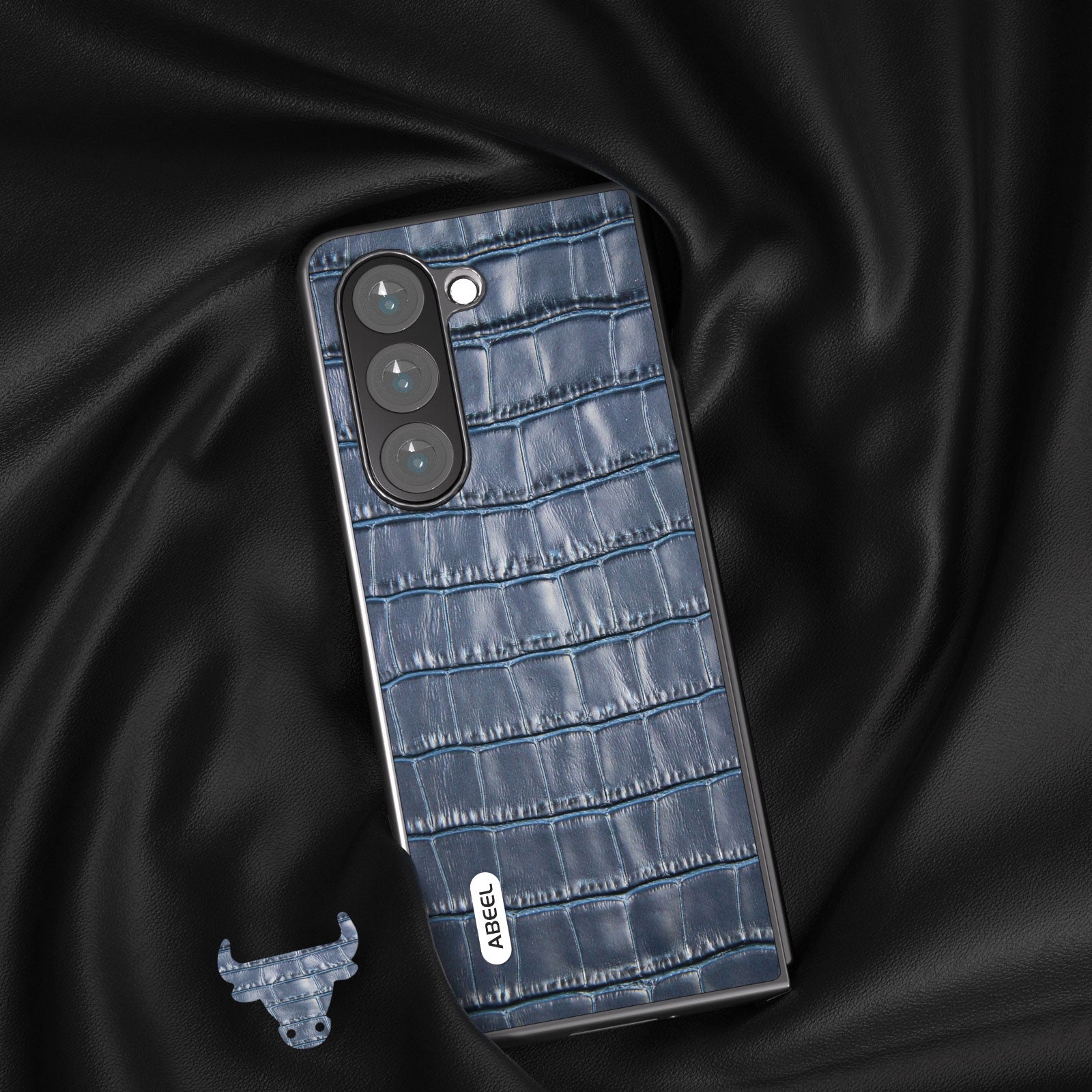 ABEEL For Samsung Galaxy Z Fold6 5G Case Crocodile Texture Genuine Cow Leather+PC Phone Cover - Blue