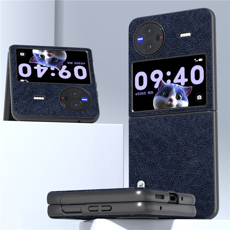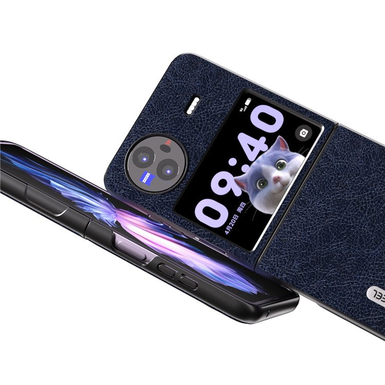 ABEEL For vivo X Flip Vintage PU Leather Coated PC Phone Case Litchi Texture Anti-Scratch Folding Cover - Blue