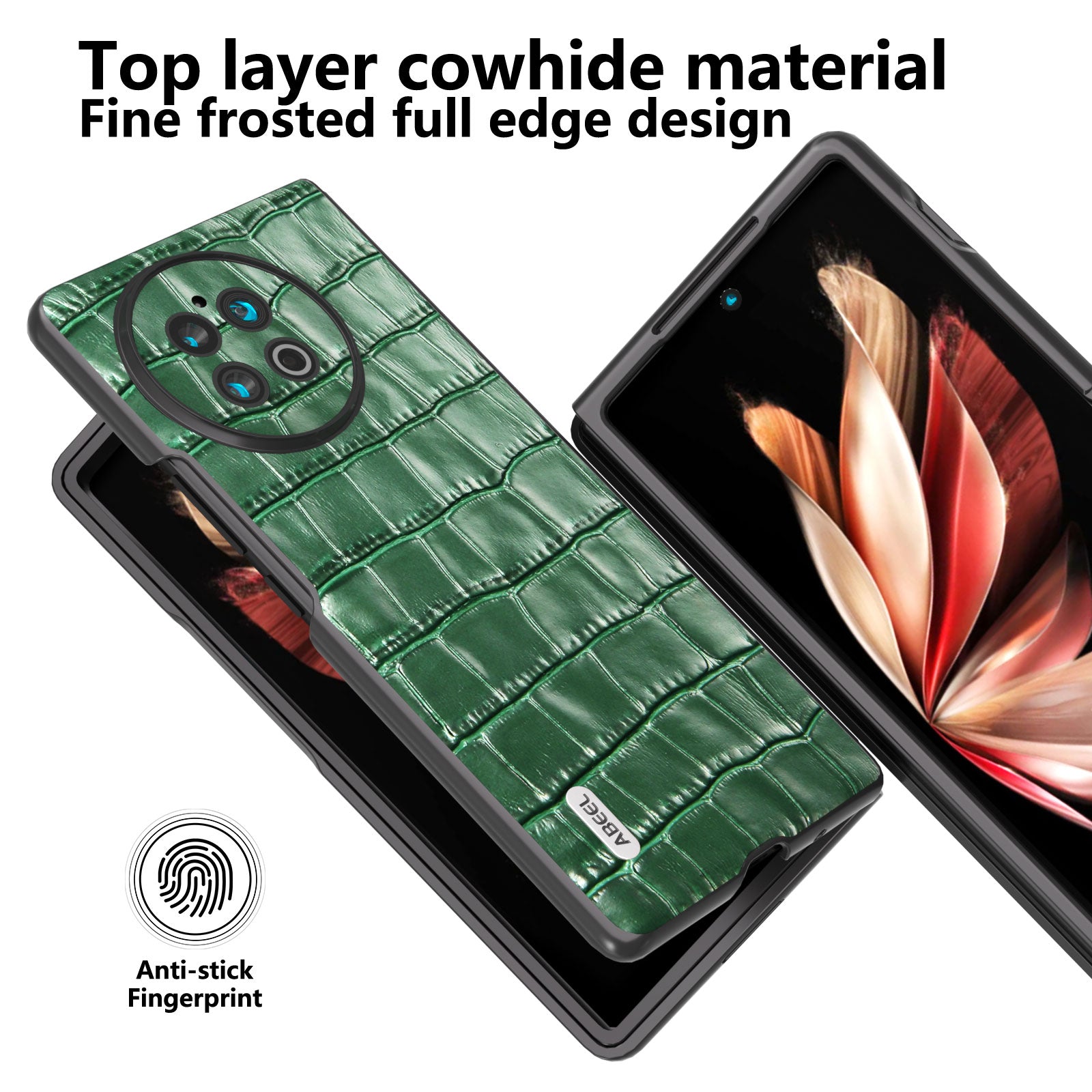- Crocodile texture genuine cow leather + PC phone case, durable to use