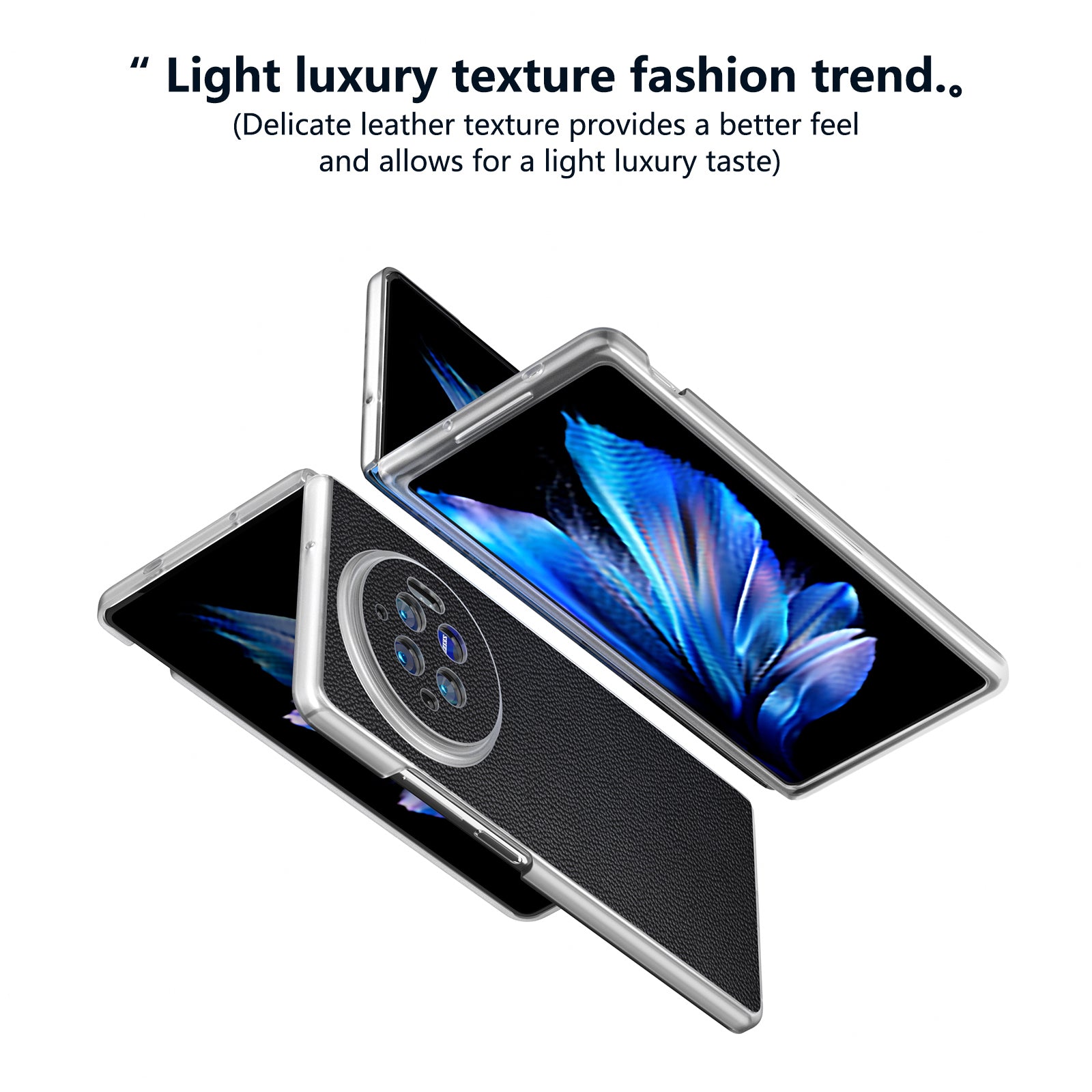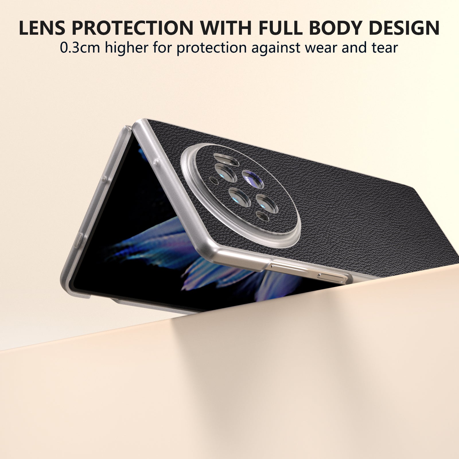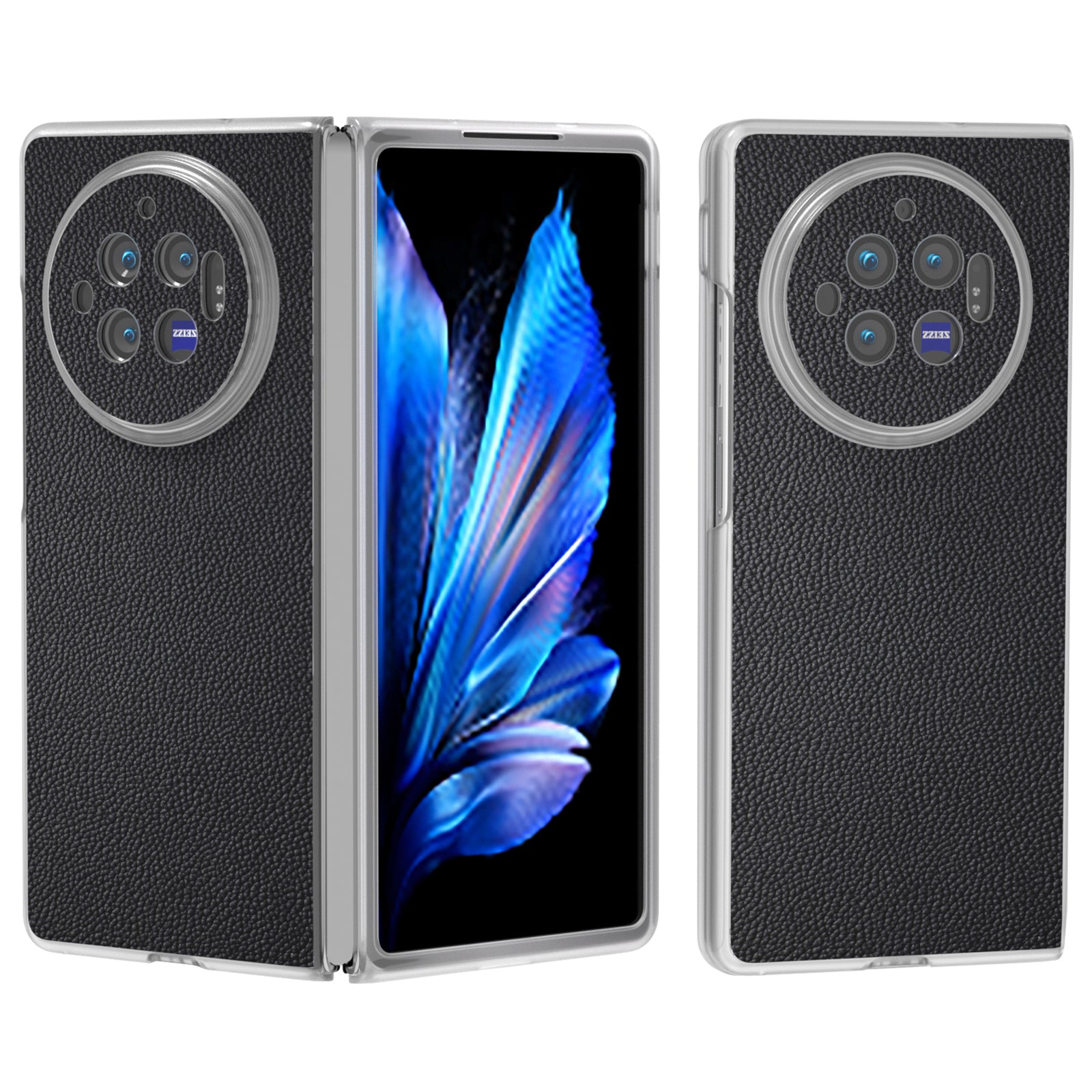 ABEEL For vivo X Fold3 Case Genuine Cow Leather+PC Matte Edge Anti-Drop Back Phone Cover - Black
