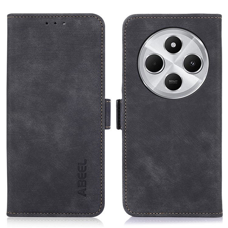 ABEEL For Xiaomi Redmi 14C 4G Case Retro Leather Phone Cover Wallet Stand View - Black