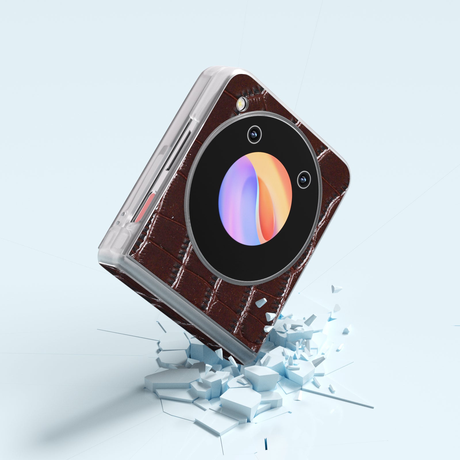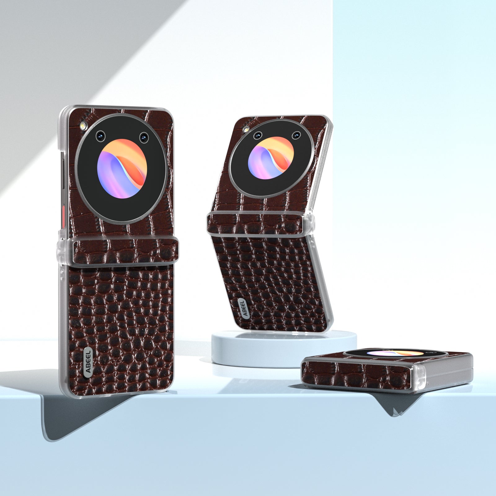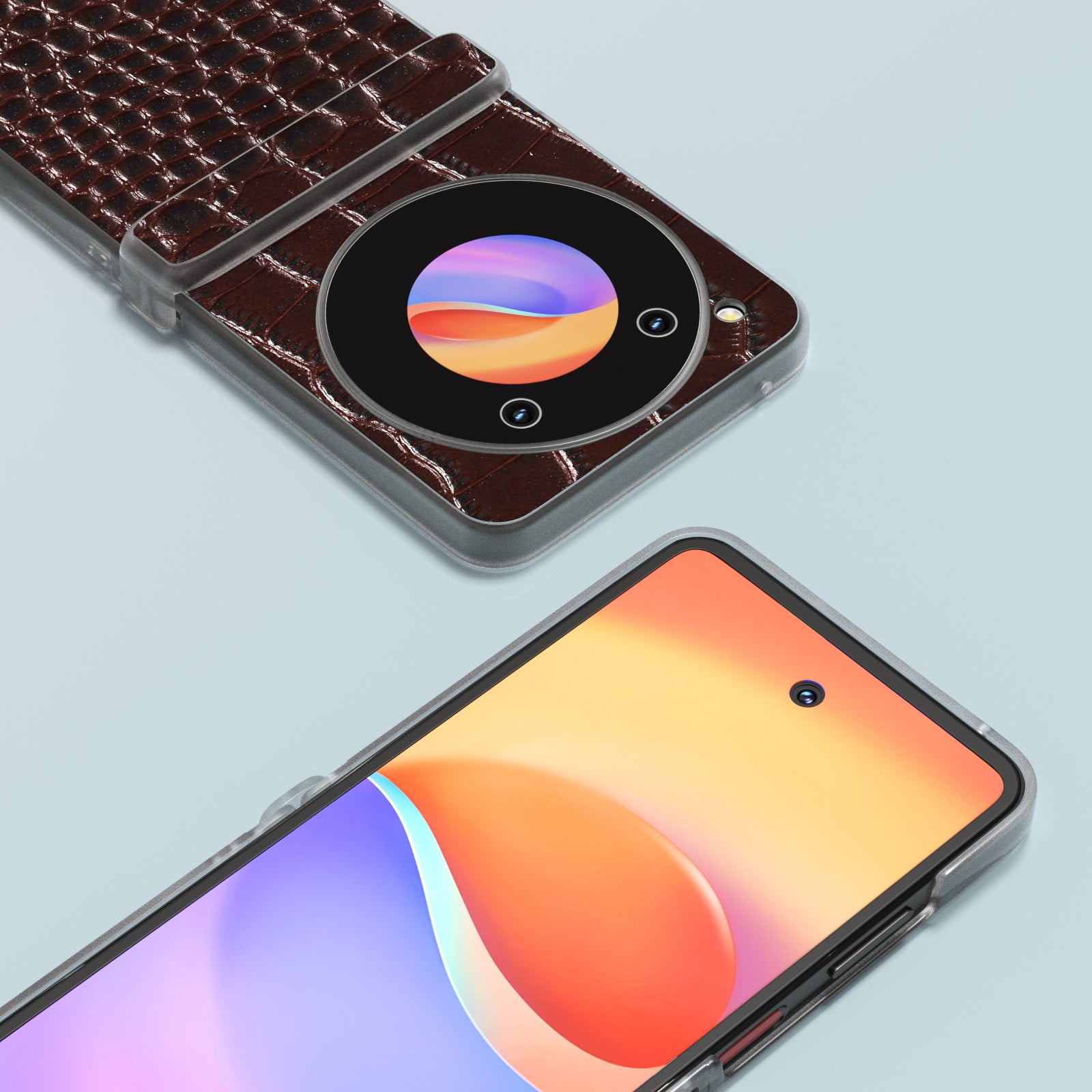 ABEEL For ZTE nubia Flip 5G Case Matte Edge Genuine Cow Leather+PC Hinge Protection Phone Cover - Coffee