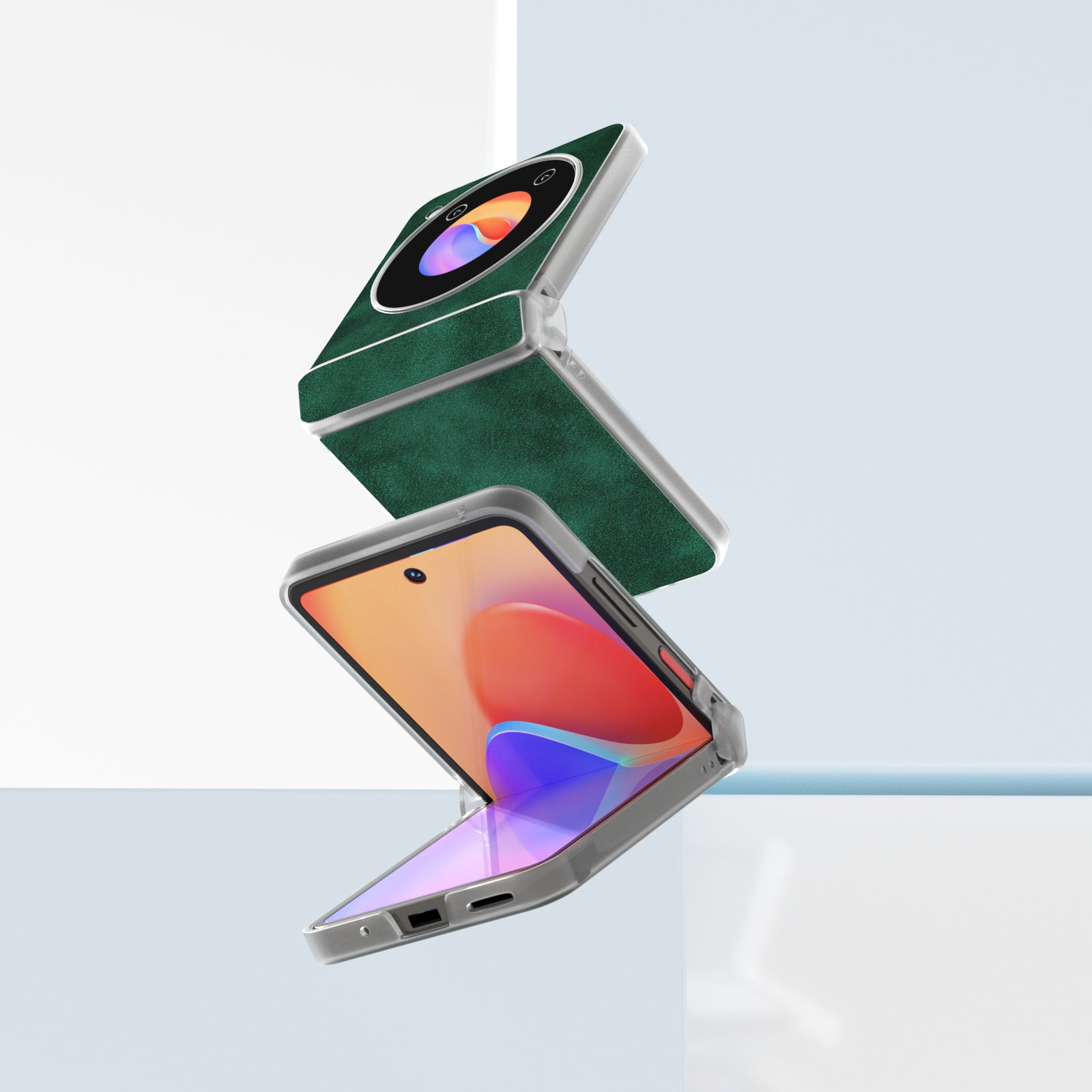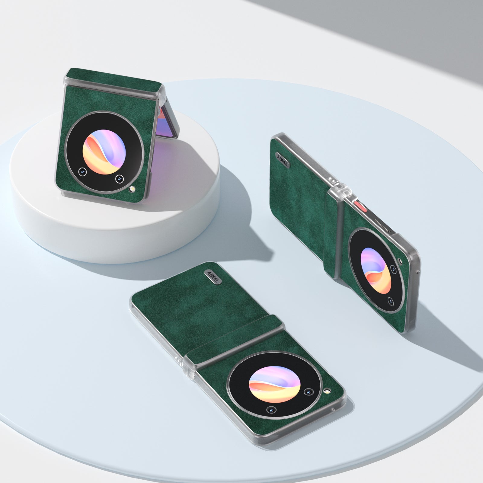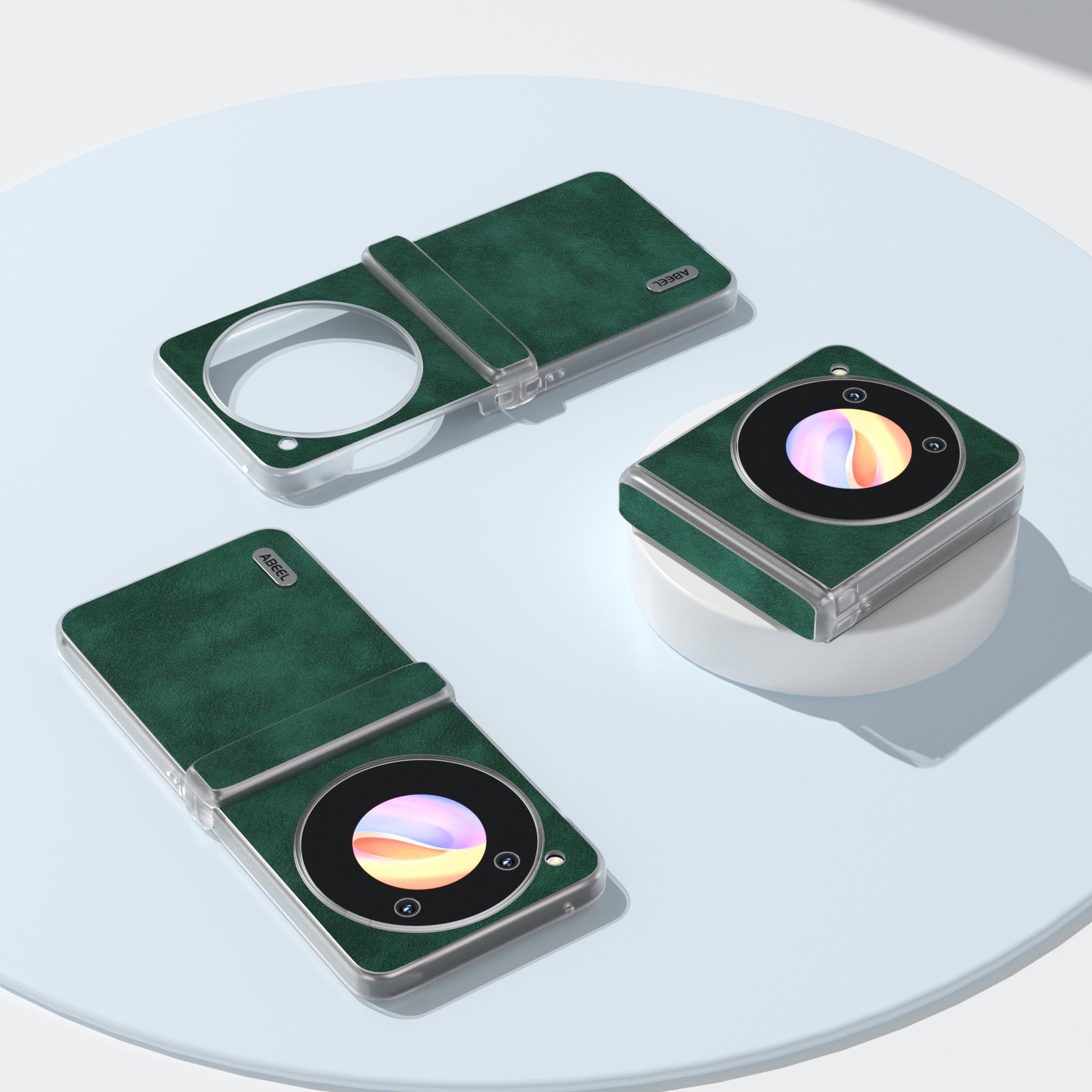 ABEEL For ZTE nubia Flip 5G Case PU Leather Coated PC Matte Clear Edge Phone Shell - Green