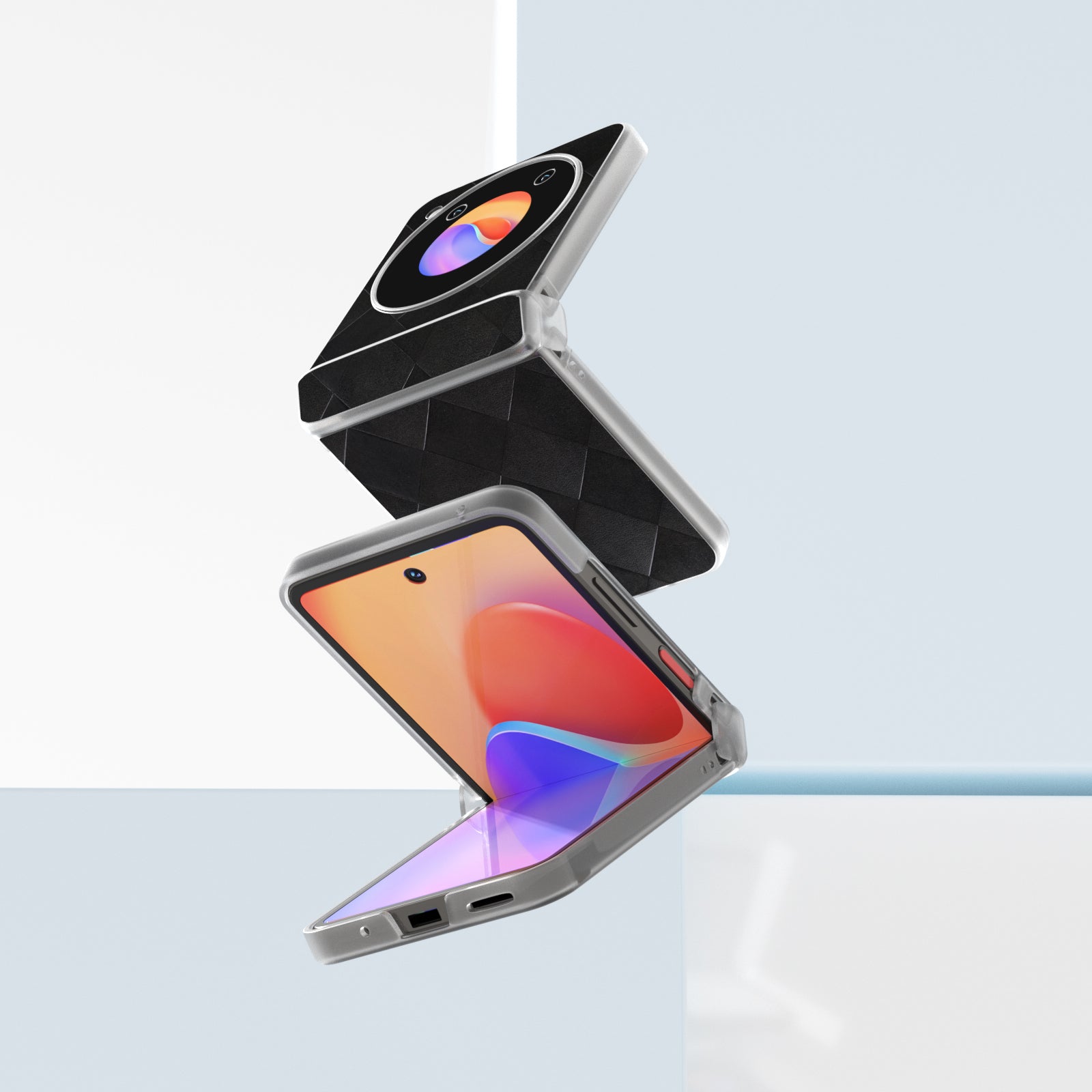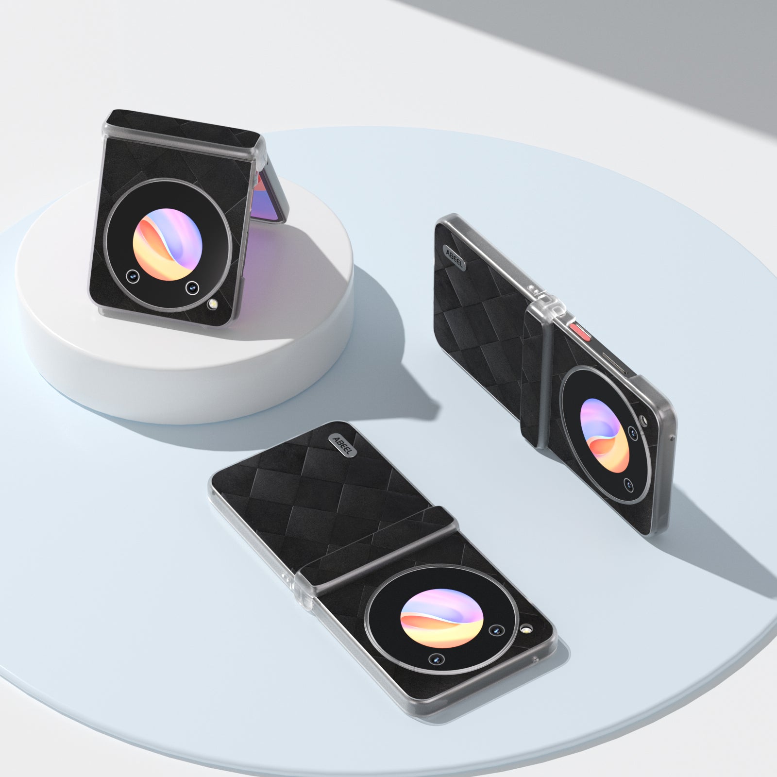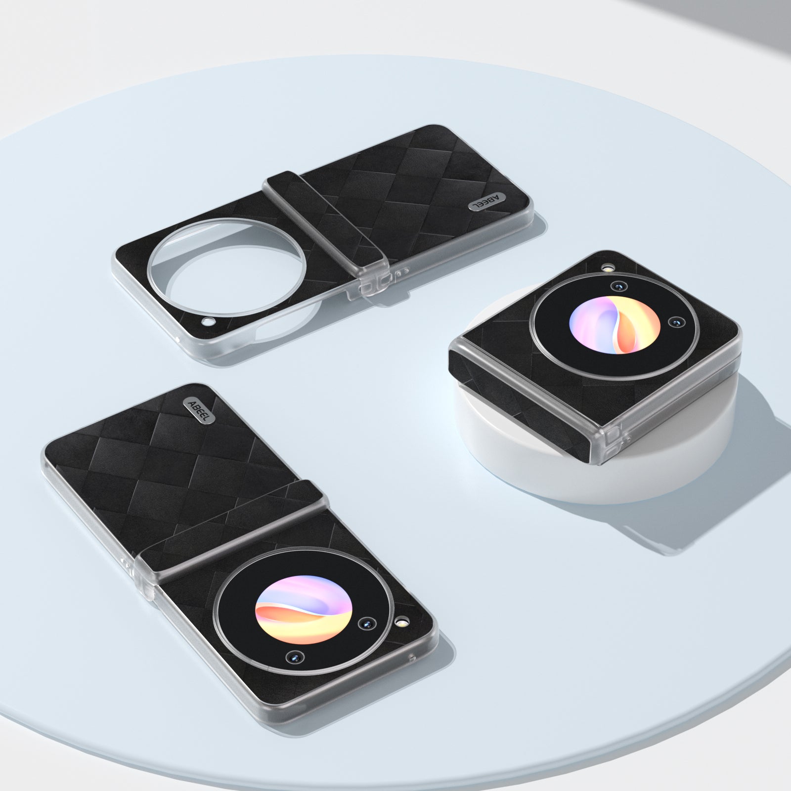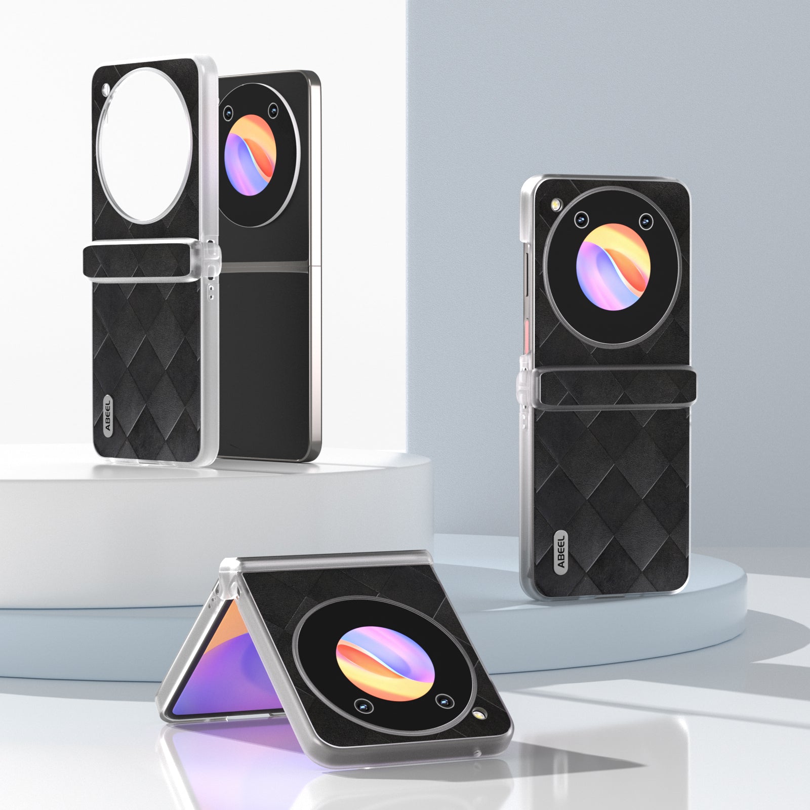 ABEEL For ZTE nubia Flip 5G Case Transparent Matte Edge Leather Coated PC Grid Pattern Phone Cover - Black