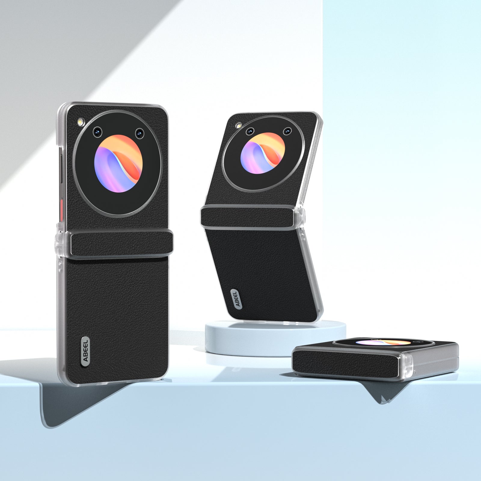 ABEEL For ZTE nubia Flip 5G Phone Case Genuine Cow Leather Coated PC Cover Matte Clear Edge - Black