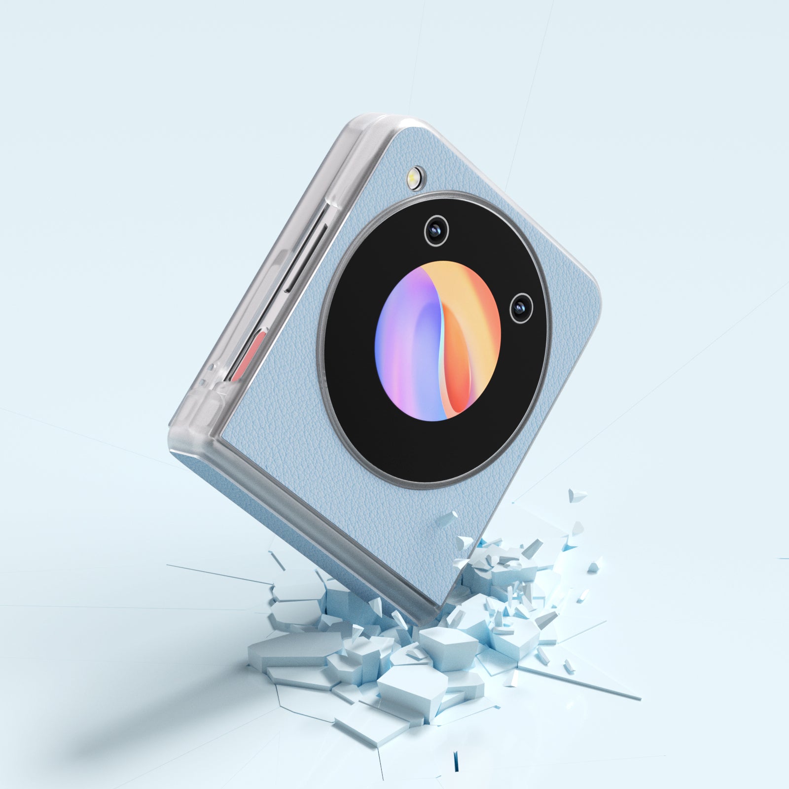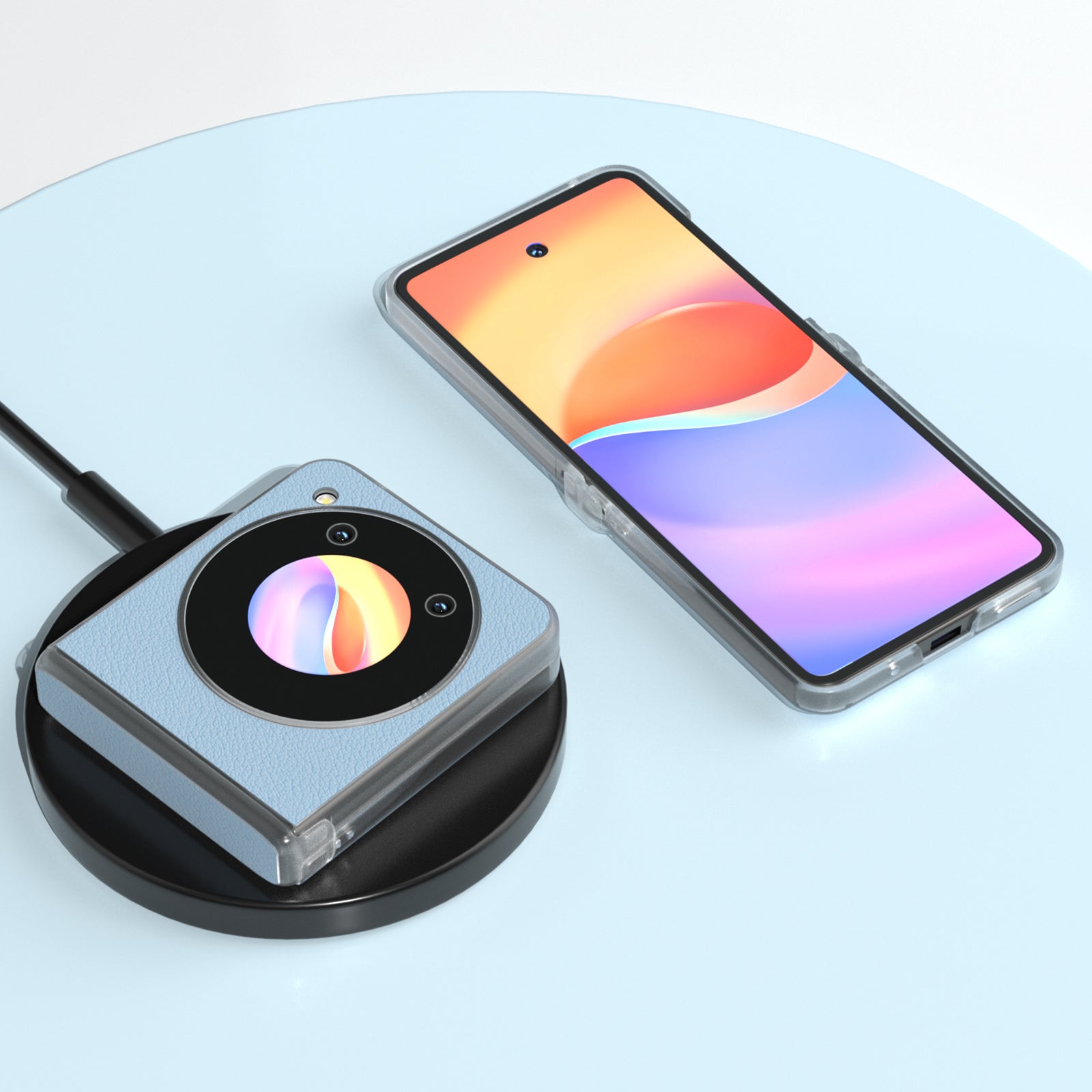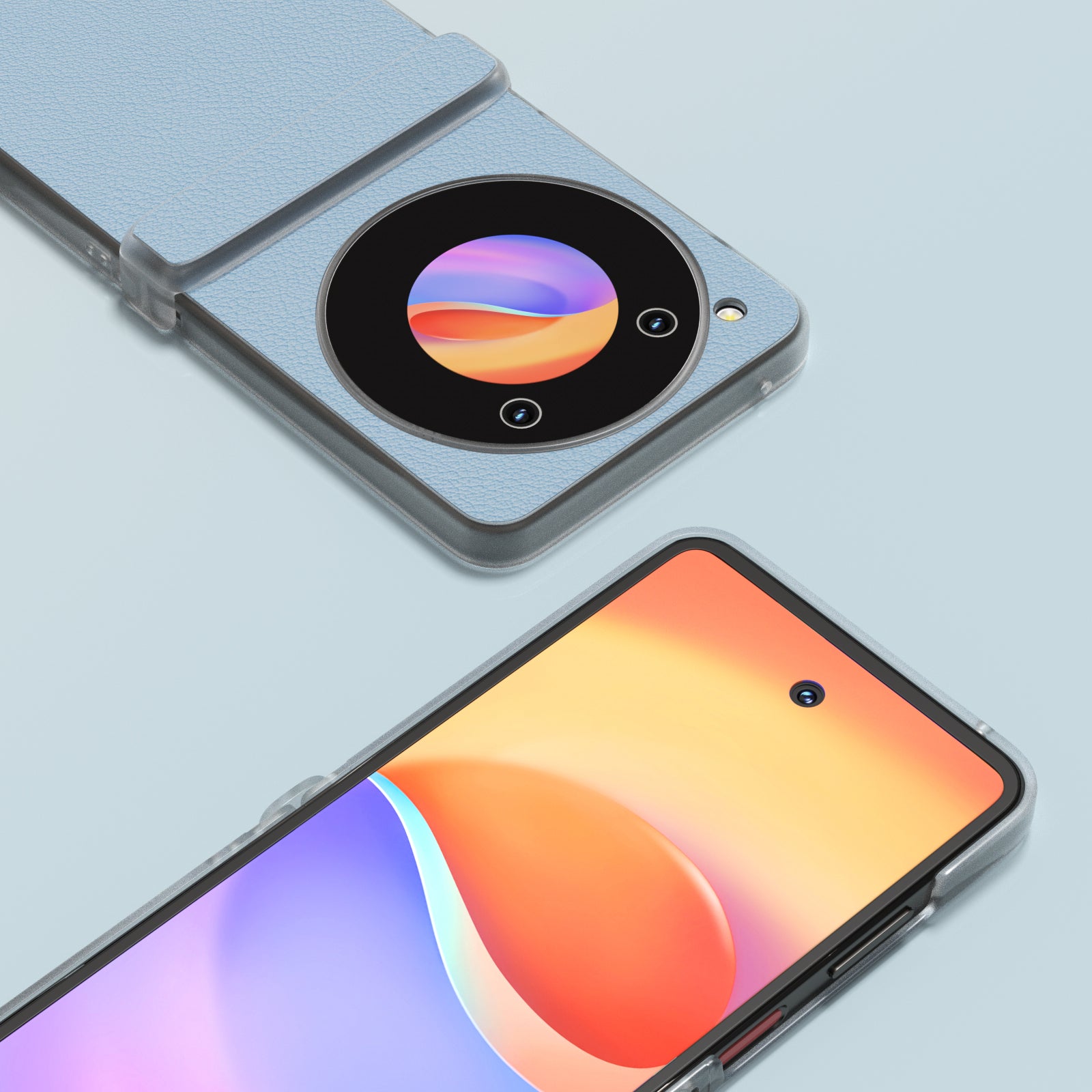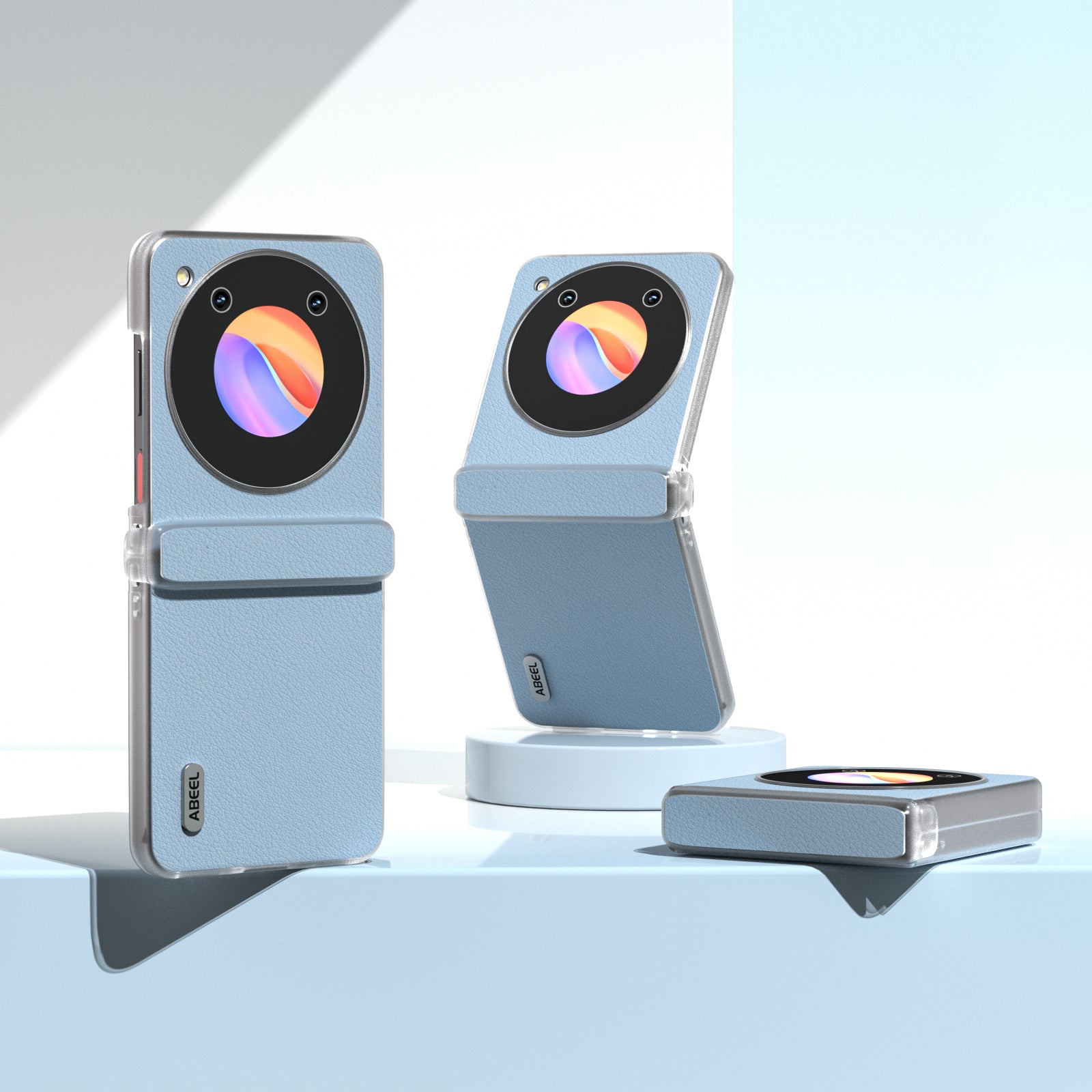 ABEEL For ZTE nubia Flip 5G Phone Case Genuine Cow Leather Coated PC Cover Matte Clear Edge - Blue