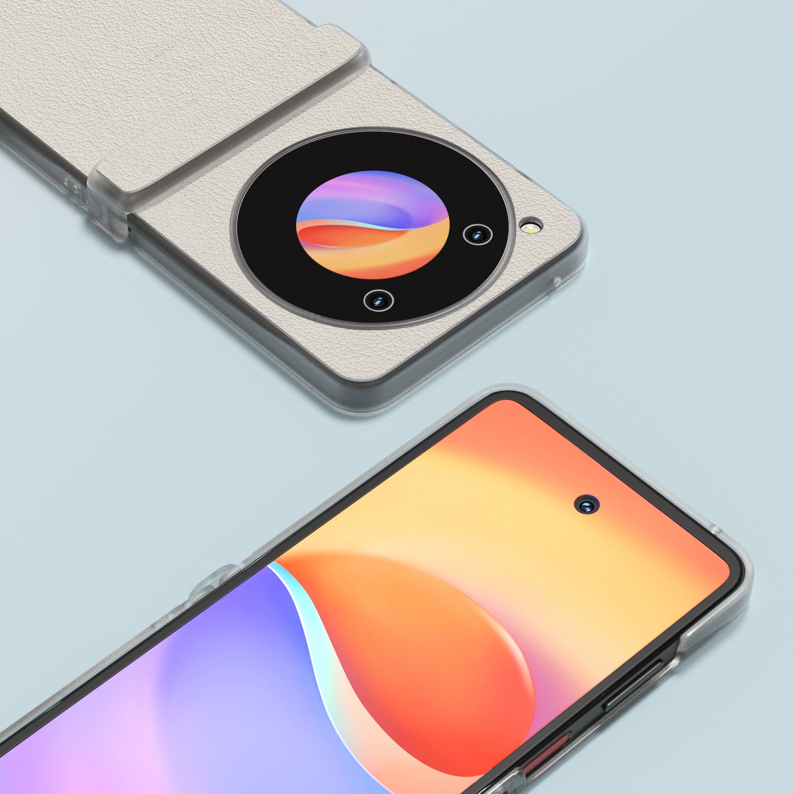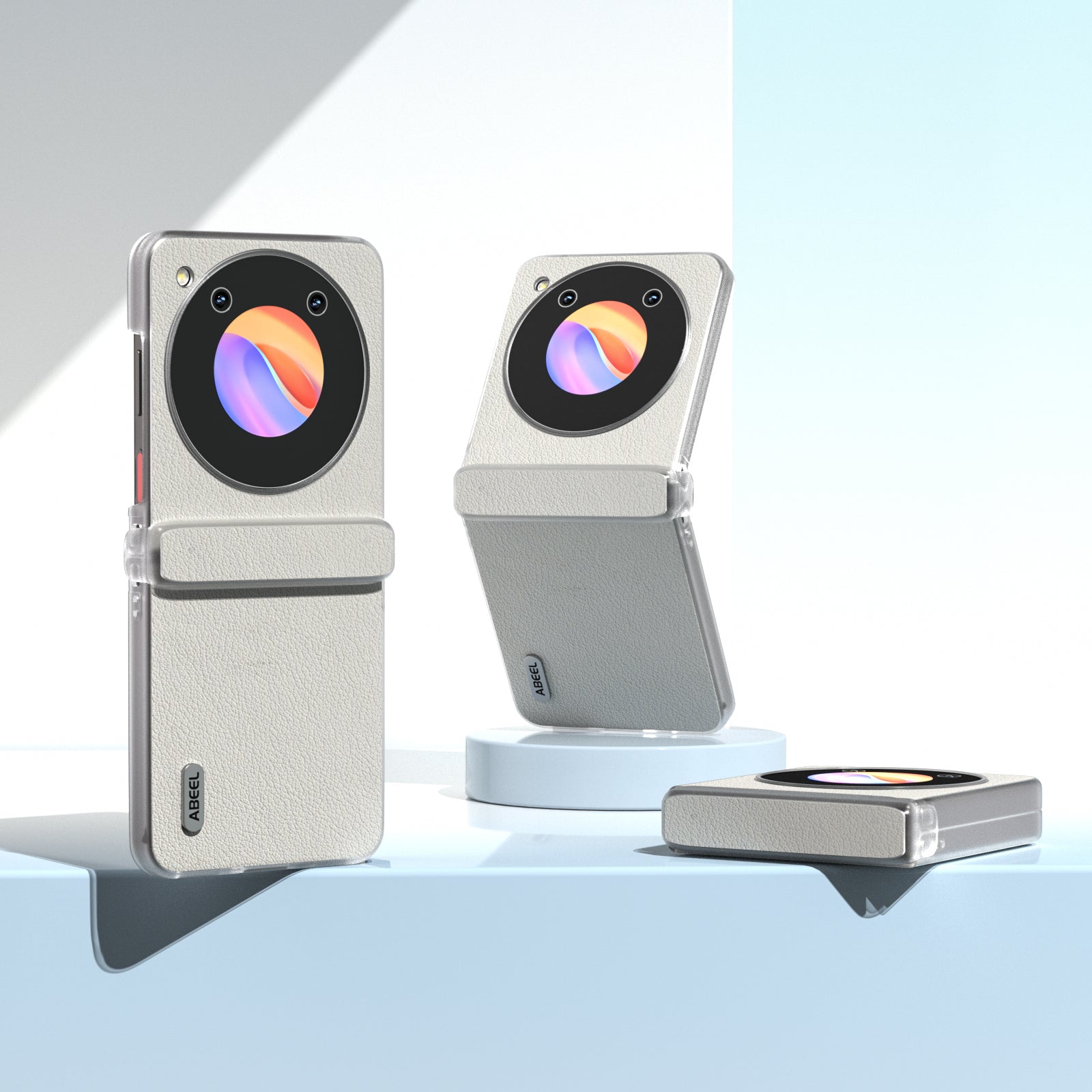 ABEEL For ZTE nubia Flip 5G Phone Case Genuine Cow Leather Coated PC Cover Matte Clear Edge - Grey
