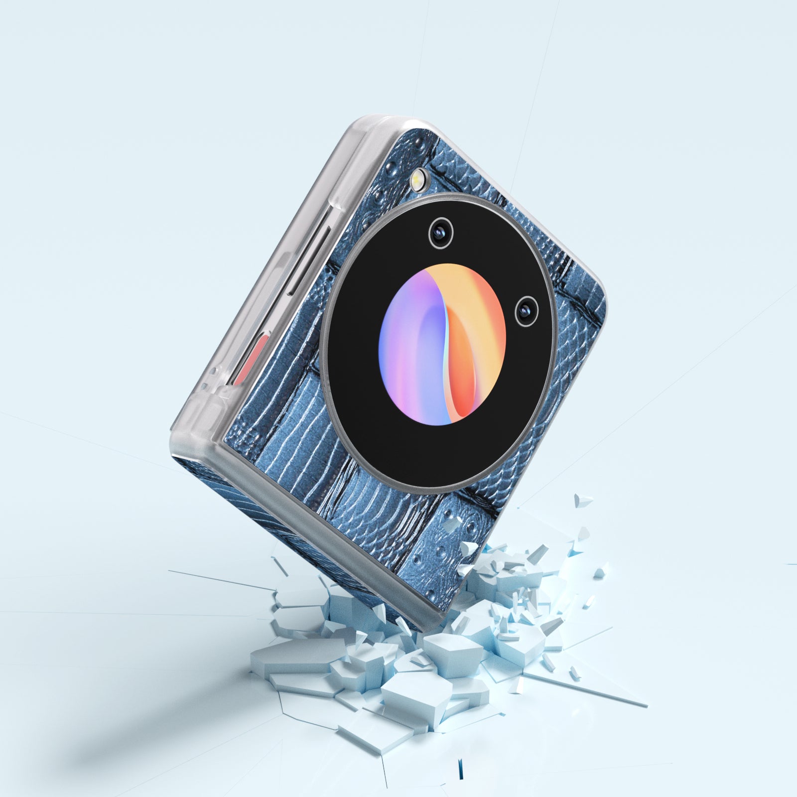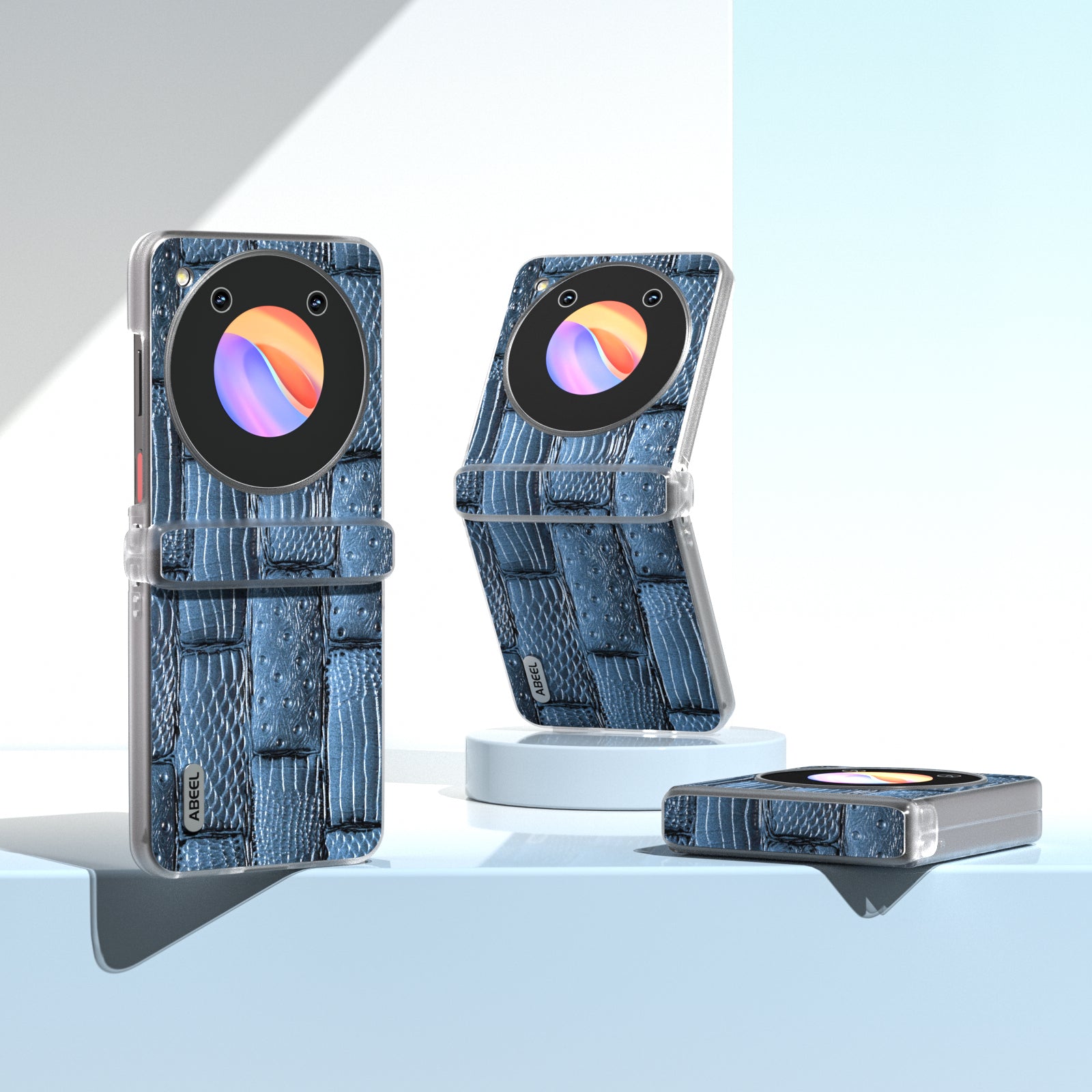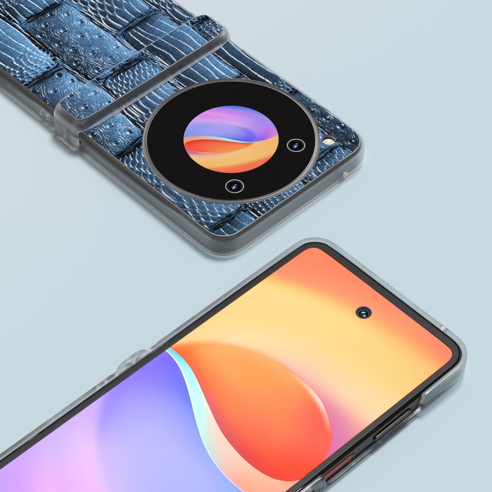 ABEEL For ZTE nubia Flip 5G Phone Case Matte Edge Mahjong Texture Genuine Cow Leather+PC Slim Cover - Blue