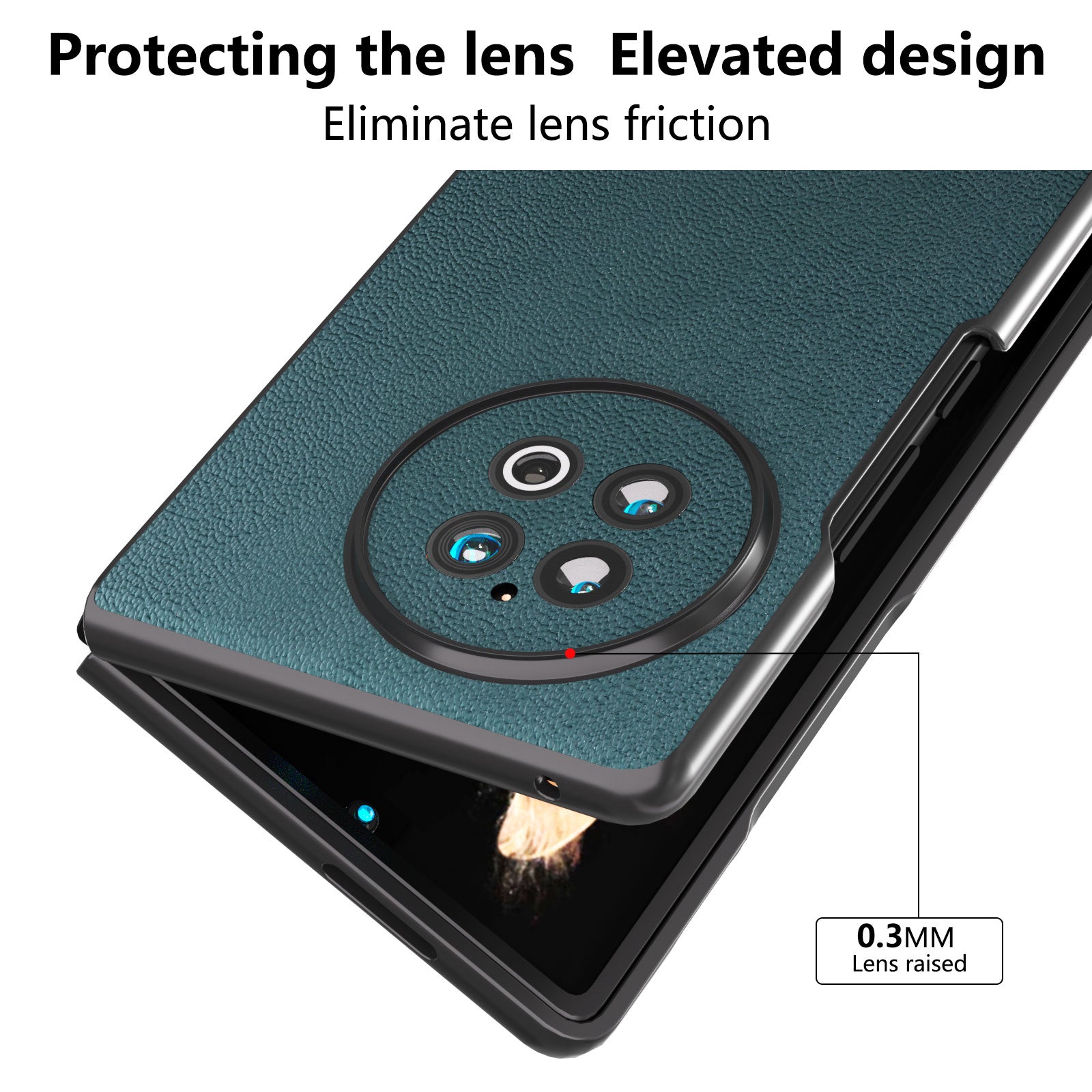 ABEEL Genuine Cow Leather PC Phone Case for vivo X Fold2 Shockproof Case Folding Anti-Drop Phone Shell - Midnight Green