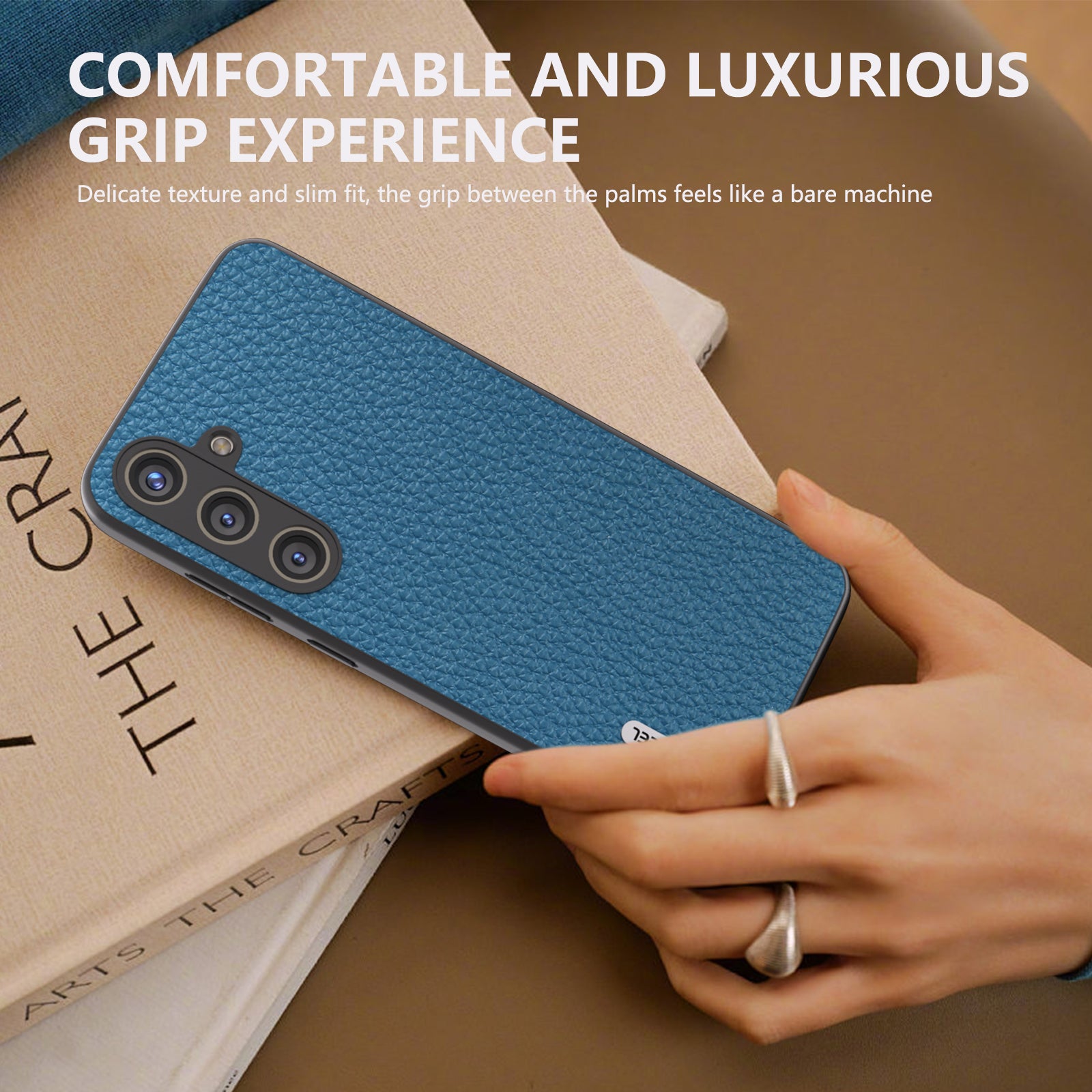ABEEL Litchi Texture Cover for Samsung Galaxy S24+ Cowhide Leather+PC+TPU Phone Case - Blue