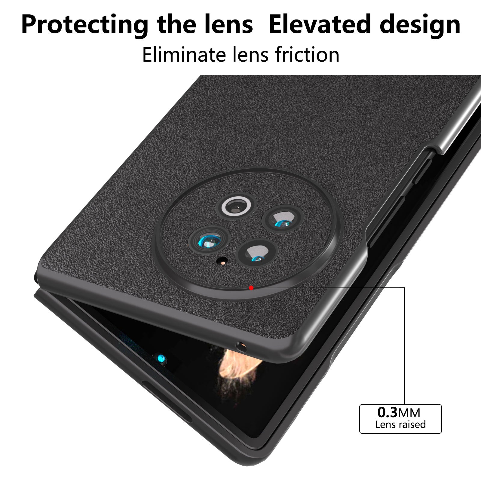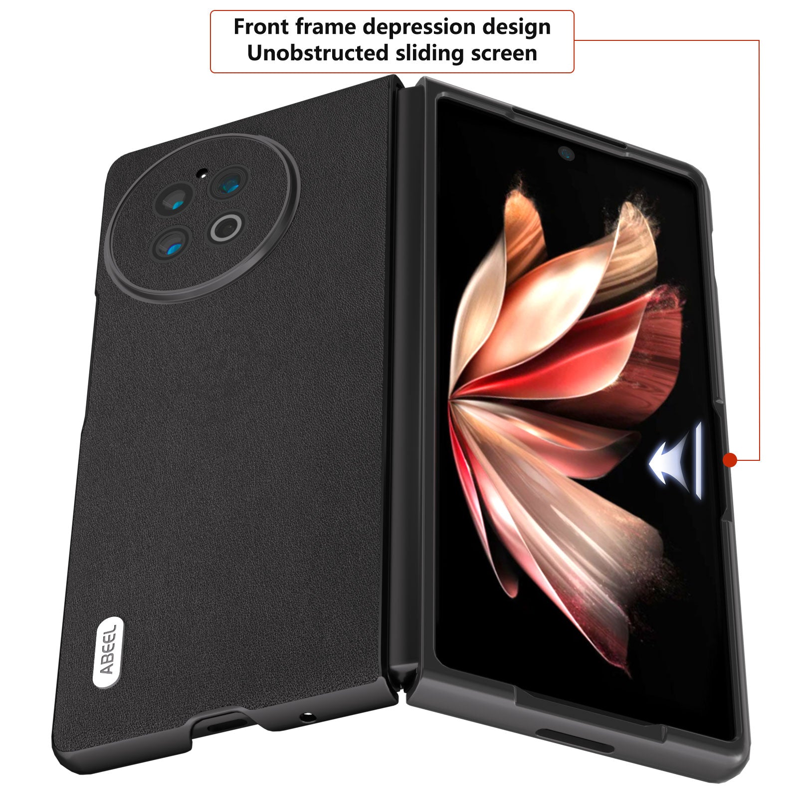 ABEEL Phone Case for vivo X Fold2 Genuine Cow Leather PC Case Folding Anti-Drop Phone Shell - Black