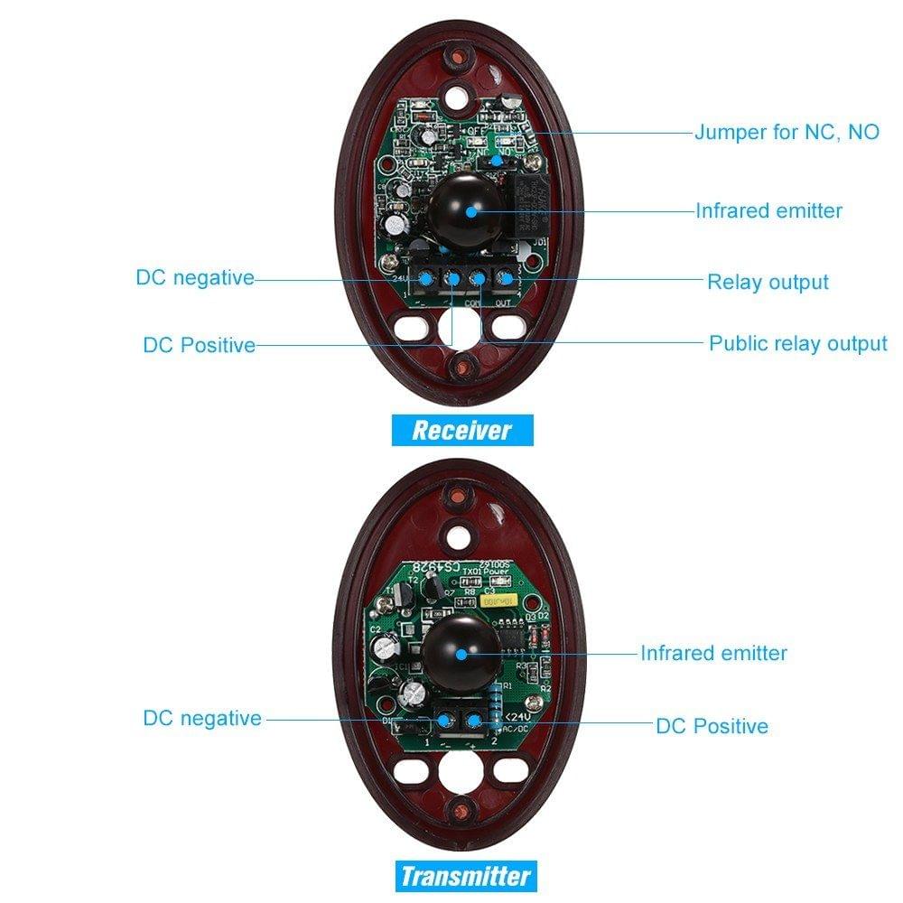 Note: It can work in distance between 2 meter to 15 meter, you can remove the lens cover when test in short distance to reduce the infrared focus. Overview: This is upgrade version of single beam sensor with latest LED light and more smt components compared with the old 3 lights handmade model, it's more stable and reliable. When interrupt the infrared, the relay will output switch signal, it can work for access control system, parking barrier, walking gate, vehicle gate and alarm system as body induction. It also can work as window, door and passageway anti-burglar detection or used in museum anti-theft. Features: *Single Beam Infrared Sensor with high levels of anti-RFI / EMI capability. *Anti-glare up to 50, 000 LUX, to avoid the impact of glare or car lights. *Sealed design to anti-rain(fog), dust(worms) and other integrated weather, the detector sensitivity will increase automatically(AGC circuit). *High-power transmitter, sensitivity surplus degree up to 90%. *High-power infrared receiver tube, low-power process technology. *Adjustable of beam interdiction period, to make it more flexible and adaptable. *When interrupt, the relay output switch signal without voltage. *Professional anti-jamming optical housing. Specifications: Power Supply: 12V to 24V DC/AC Input: RX 15mA - TX 30mA Infrared Frequency: 1.92Khz Wave Length: 940nm Working Range: 2-15m Detection Distance: 20m (open area) Switch: N/O & N/C Optional Work With: Access Control System/Parking Barrier/Alarm System,etc. Working temperature: -30 C to +50 C Item Size/Each: 78 * 50 *30mm (D*W*H) Item Weight(with case)/Each: 36g Package Information: Package Size: Approx. 13.8 * 8.4 * 4.5cm / 5.4 * 3.3 * 1.8in Package Weight: Approx. 125g / 4.4oz Packing List: 1 * Pair of Beam Sensor 1 * Set of Mounting Screws 1 * User Manual