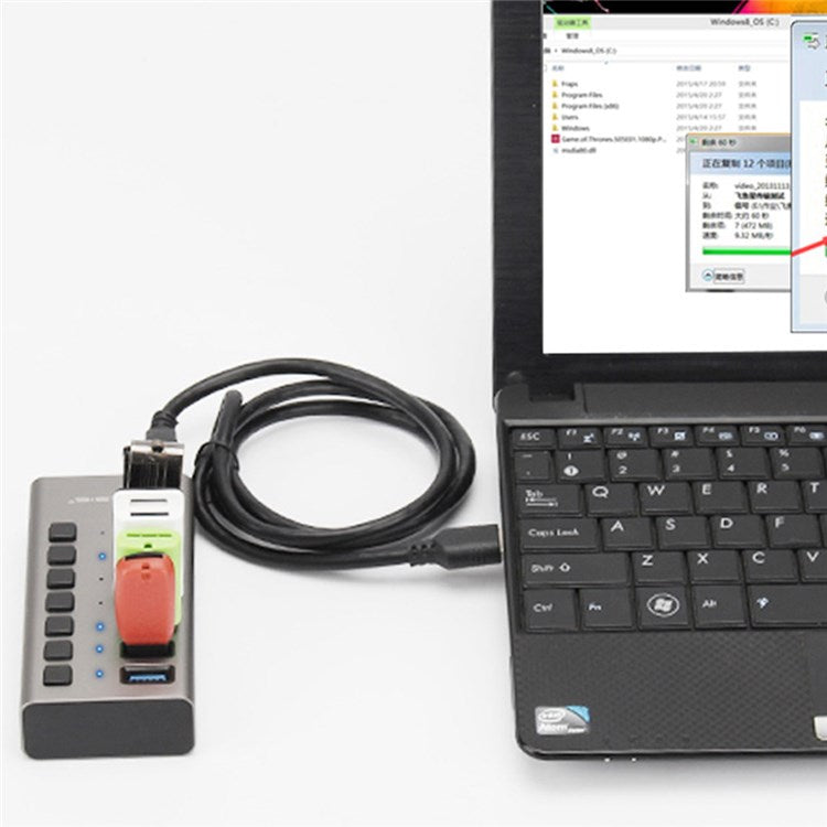 ACASIS HS-707MG 7 Ports USB3.0 5Gbps High Speed Transmission Charging Dock USB Hub Splitter with Independent Switch - UK Plug