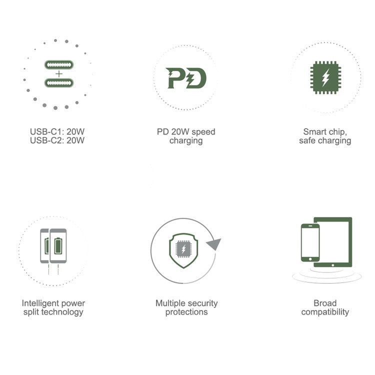 Support dual C ports output, support PD fast charge for Apple and for Samsung, support PD fast charge for Apple and for iPad