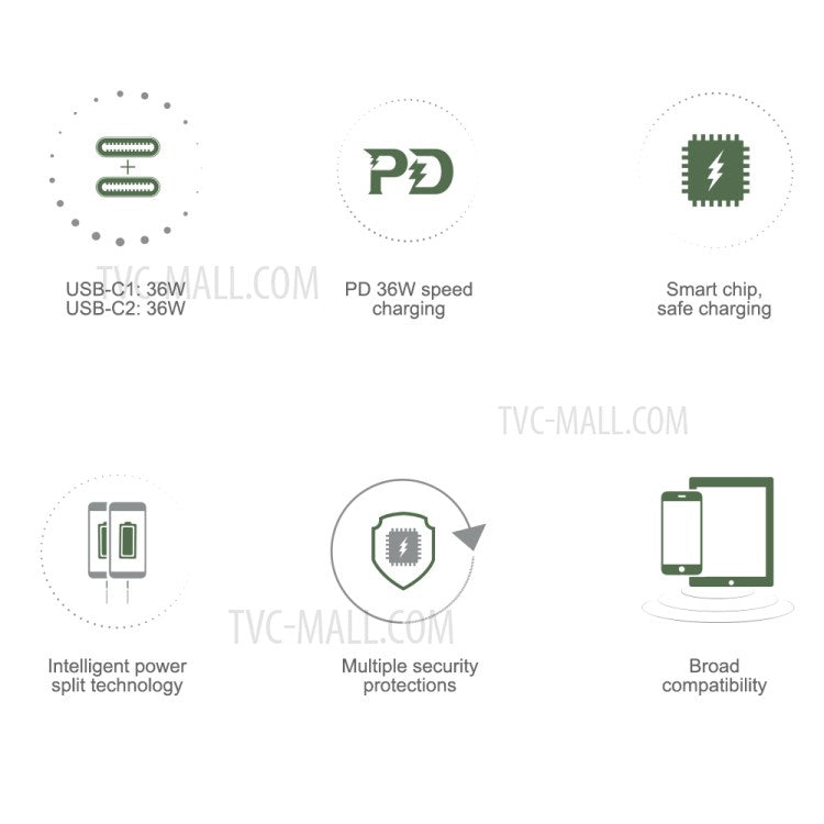 Output: Type-C 1/2: 36W, C1+C2=72W