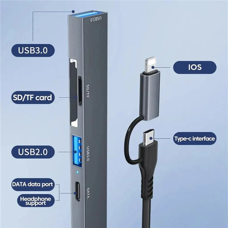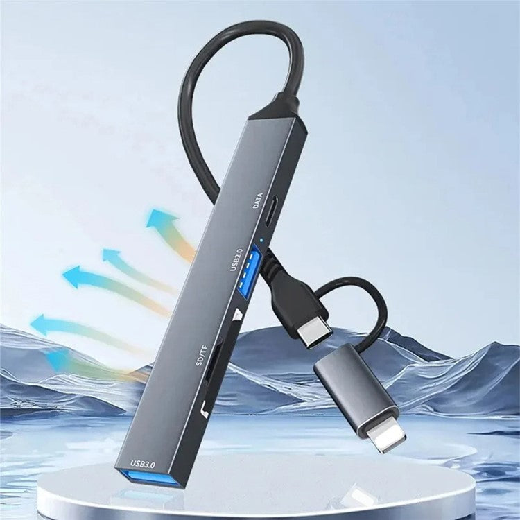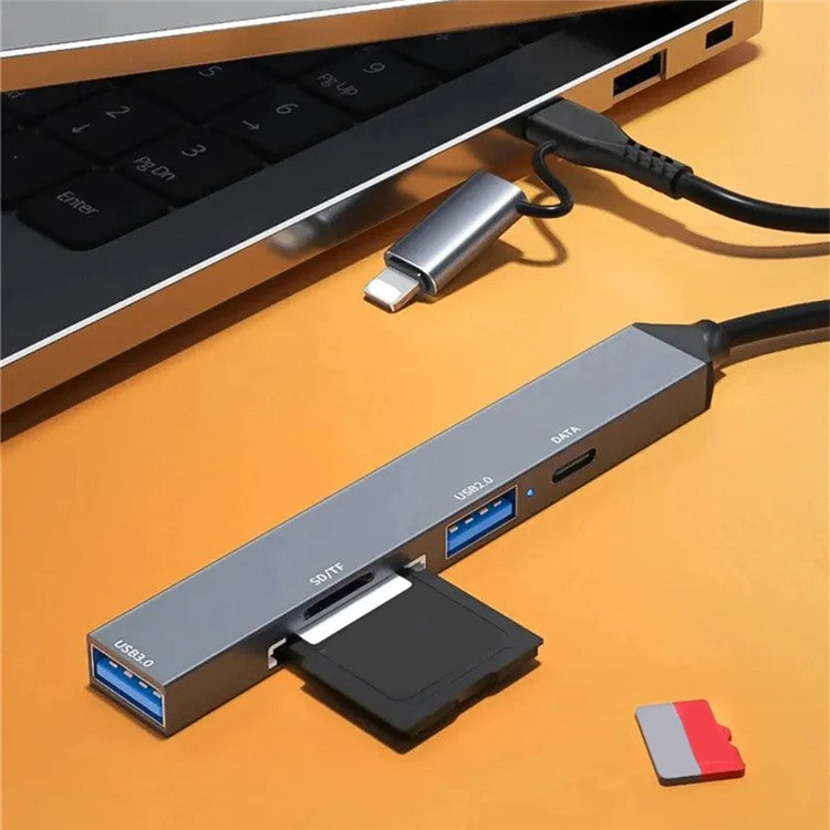 ADS-805 Type-C+Lightning Hub Expansion Converter to USB-C Data+USB 2.0+USB 3.0+2 Card Reader Slots