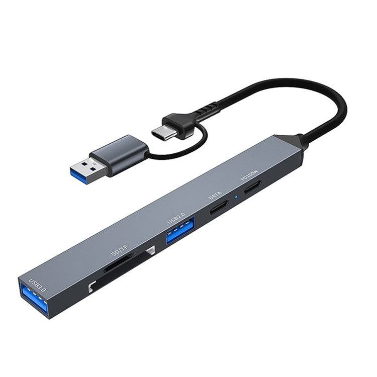 ADS-807D USB+Type-C Adapter to PD 100W Charging Data Reading Card Slots Multi-Port Hub