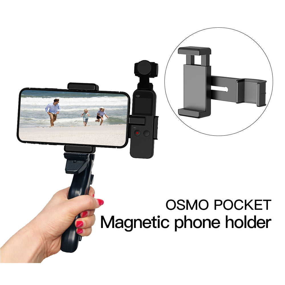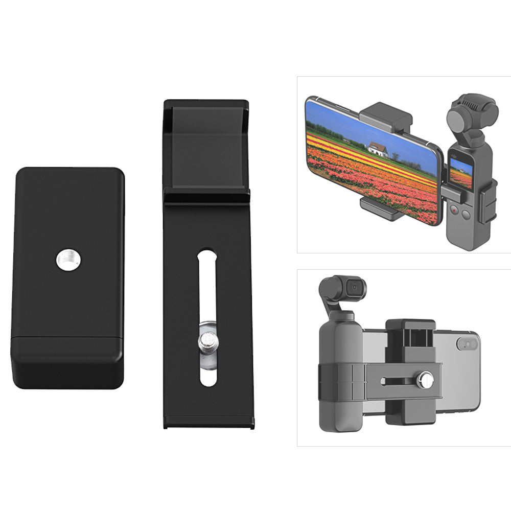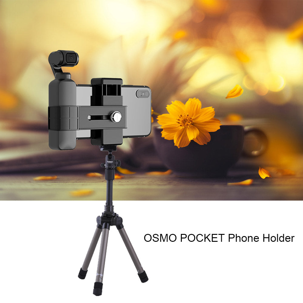 - Portable and durable phone clamp holder mount grip, securely locks your phone and for Osmo Pocket, helps you enjoy photography and get a more professional filming experience
