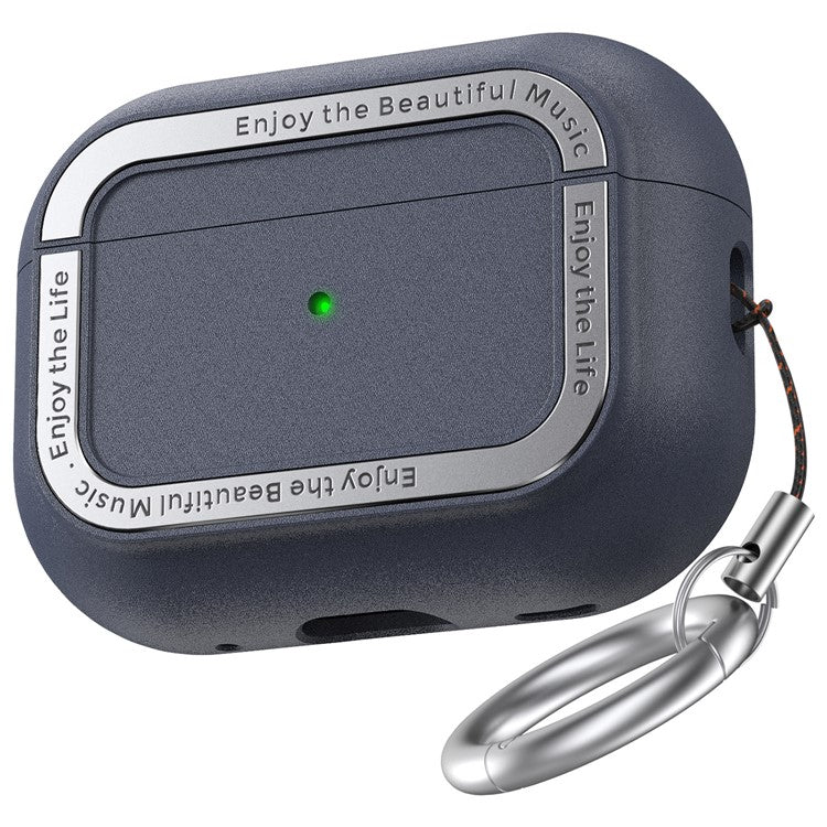 AHASTYLE JY09 For AirPods Pro 2 Protective Case TPU+Aluminum Alloy Split Type Earphone Cover - Midnight Blue