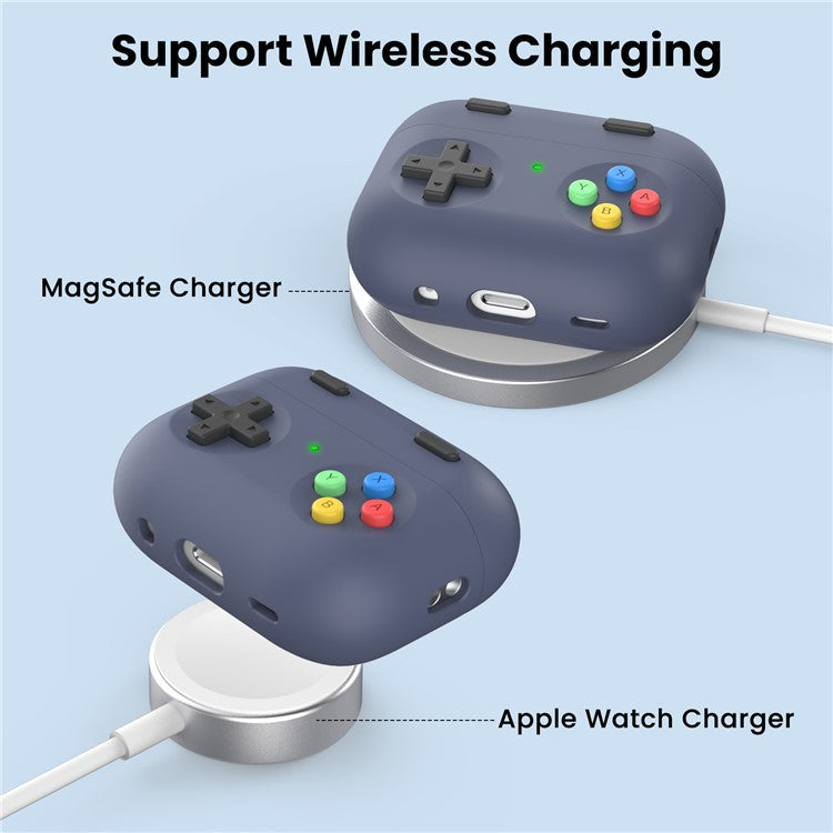 AHASTYLE PT-DD04 For Apple AirPods Pro 2 Game Console Design Split Silicone Protective Cover Earphone Case - Midnight Blue