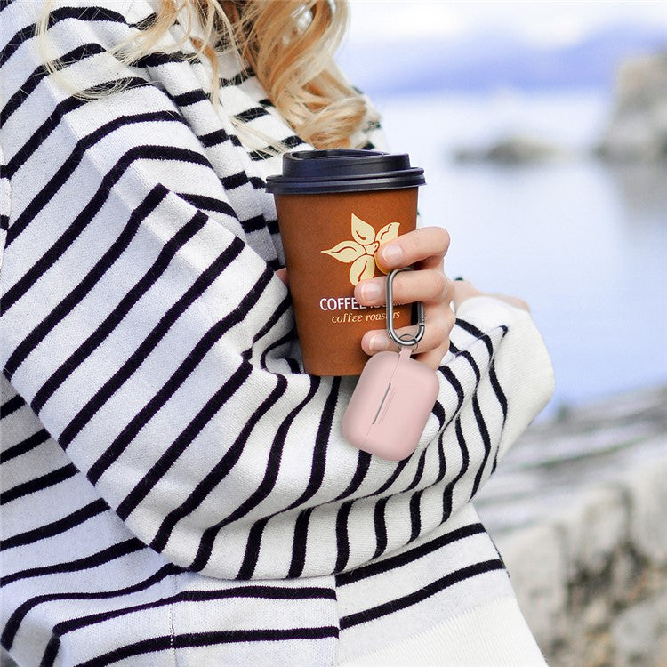 AHASTYLE PT-P1 Earphone Silicone Case for Apple AirPods Pro, Earbud Charging Box Full Protection Cover with Carabiner - Pink