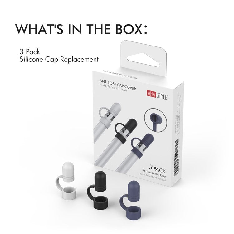 AHASTYLE PT110 3Pcs for Apple Pencil (1st Generation) Charging Cable Adapter Tether Stylus Pen Anti-lost Silicone Cap Cover - White / Blue / Black