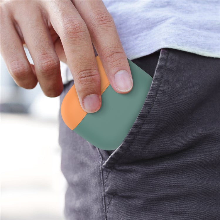 AHASTYLE PT147-2 Silicone Cover for Apple AirPods 3 Case Dual Color TWS Headset Protective Case (2 Caps + 1 Body) - Midnight Green / Orange