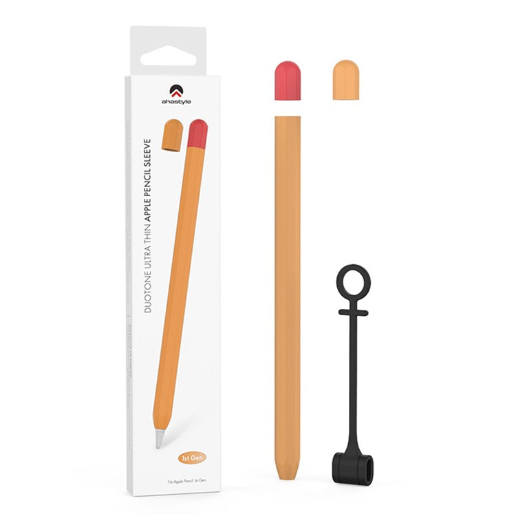 AHASTYLE PT94 Silicone Case for Apple Pencil (1st Generation), Stylus Pen Sleeve Contrast Color Protective Cover - Orange / Red