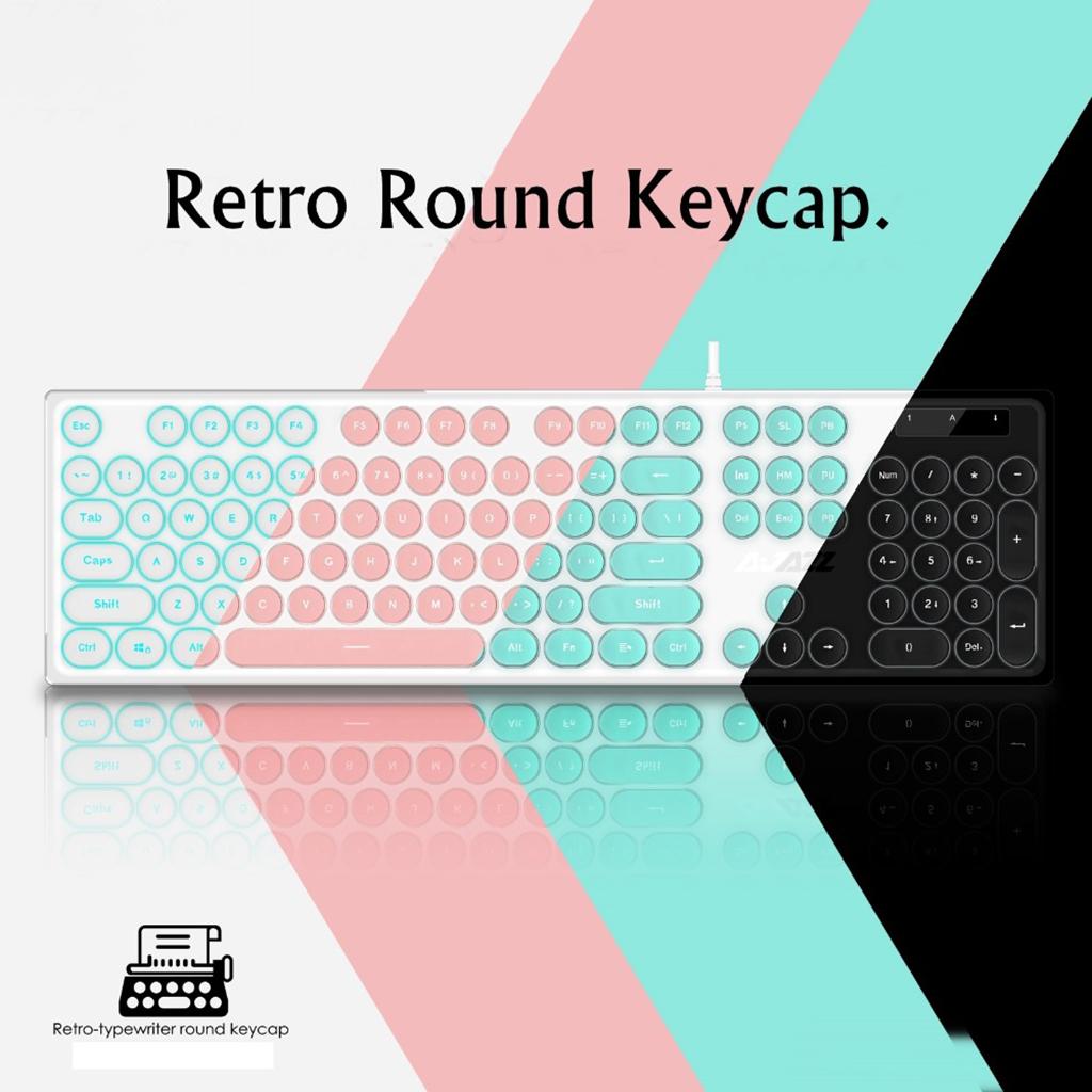 Ajazz AK325 Gaming Keyboard Backlit Wired Retro Keyboard 104 Keys Pink