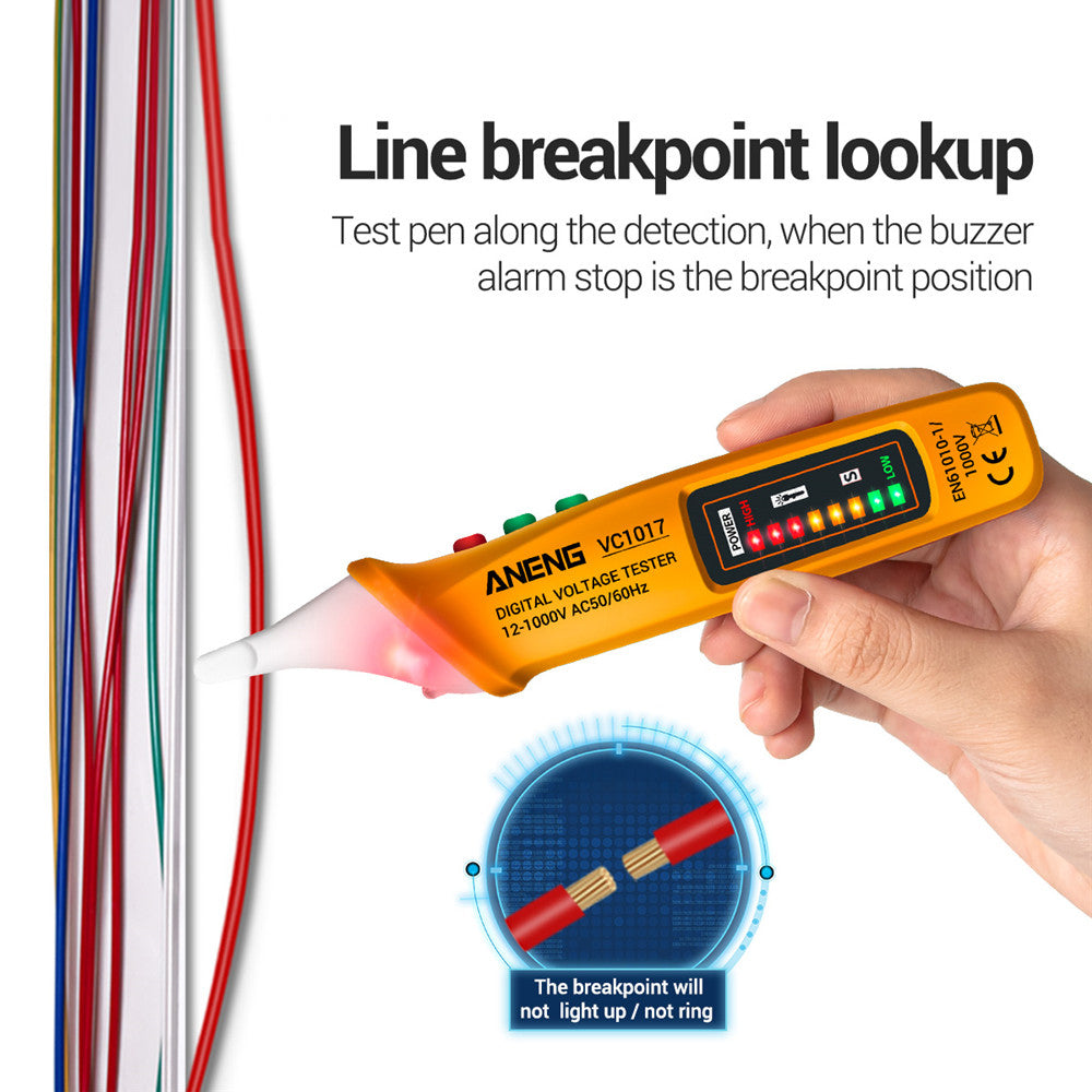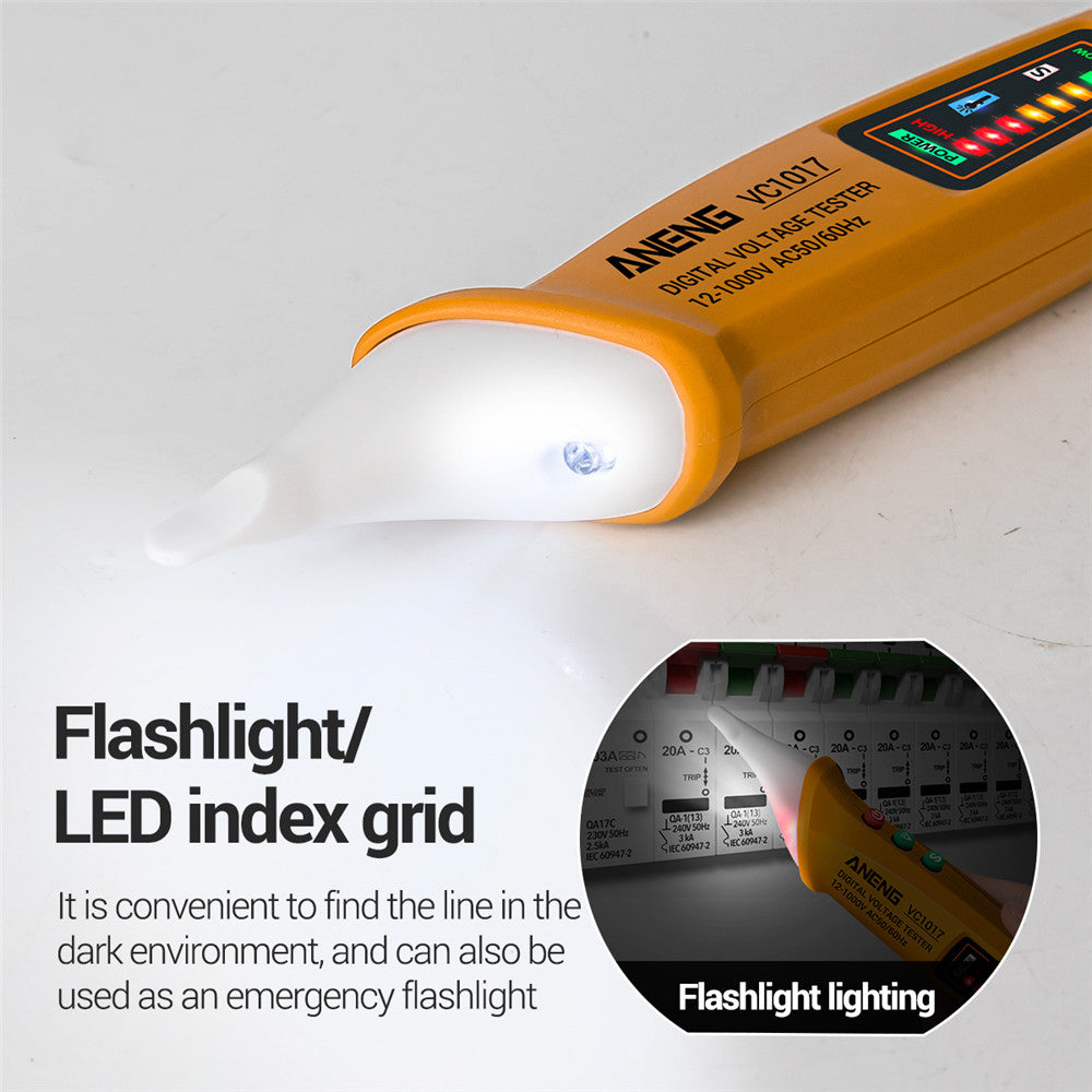 Aneng VC1017 12-1000V Non-contact Sound-light Tester Digital AC Voltage Meter Multimeter Pen - Yellow