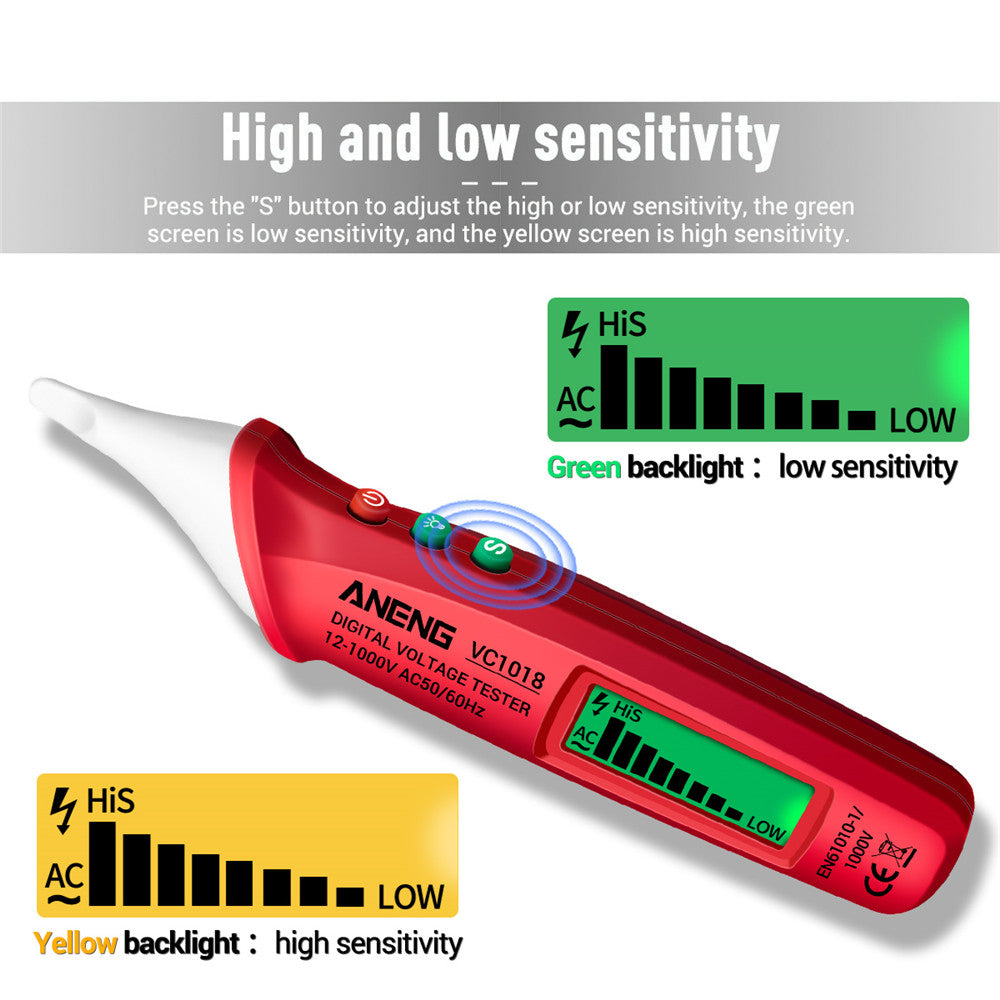 Non-contact detection: When the electric test pen senses the nearby AC voltage, the screen will display red and full signal, and there will be a quick beep