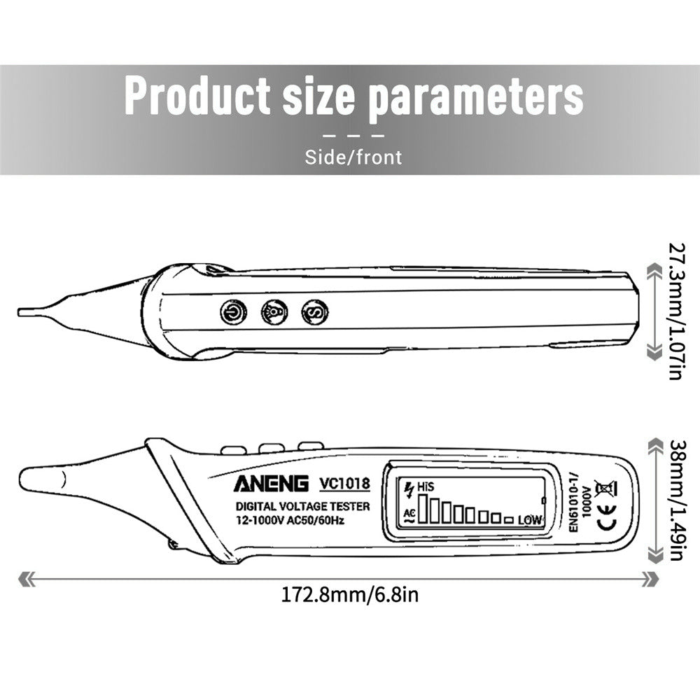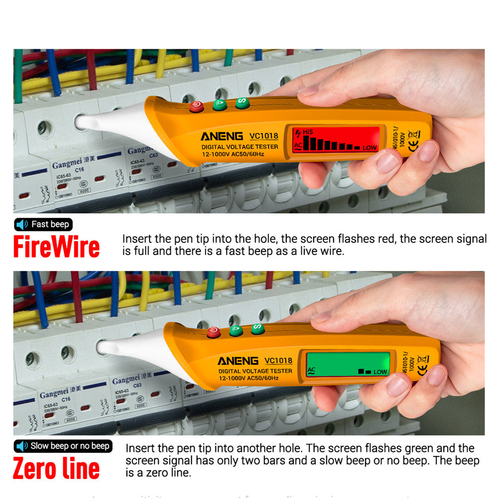 Aneng VC1018 12V-1000V Non-contact Electric Sensor Tester Pen Digital AC Voltage Meter Buzzer Detector with LCD Screen - Yellow