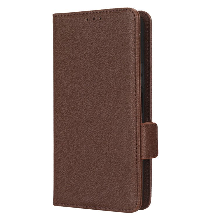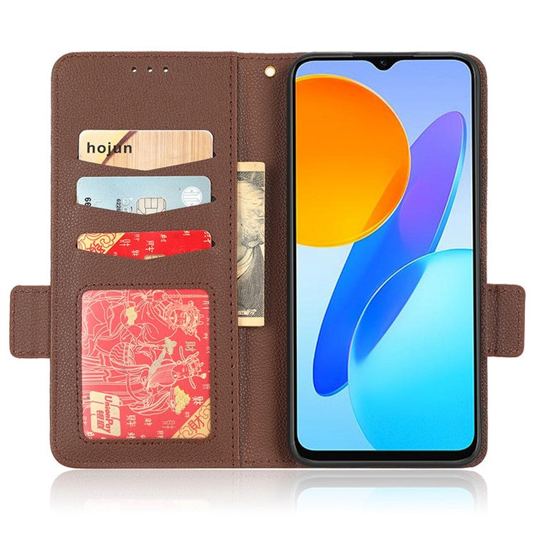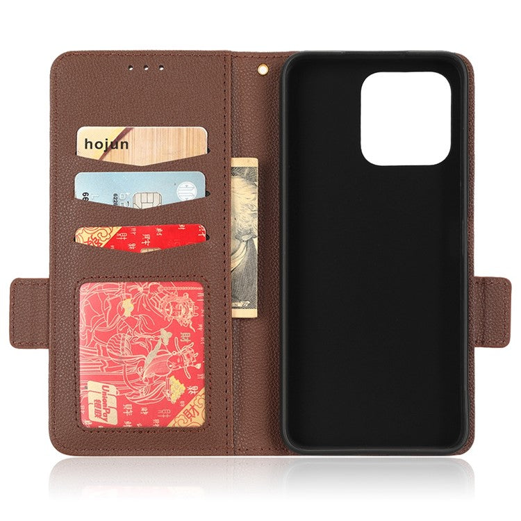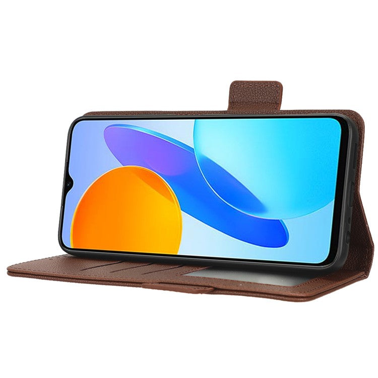Anti-drop Litchi Texture Phone Cover for Honor 70 Lite 5G / X6 4G / Honor Play6C / X8 5G PU Leather Dual Magnetic Clasp Flip Wallet Case - Brown