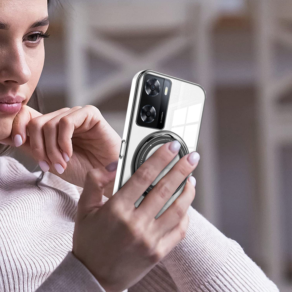 Anti-drop Phone Case for Oppo A57 (2022) 5G PC+TPU Ring Kickstand Cover Compatible with MagSafe - Pink