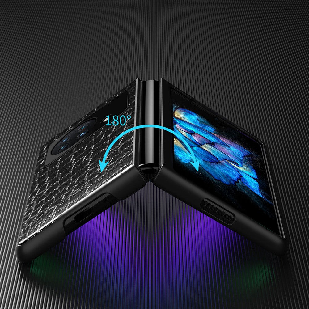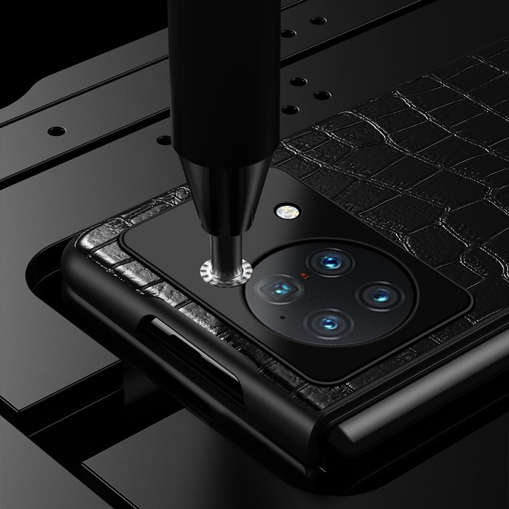 Anti-Drop Phone Case for vivo X Fold Scratch-Resistant Folded Crocodile Leather Coated Phone Protector - Black