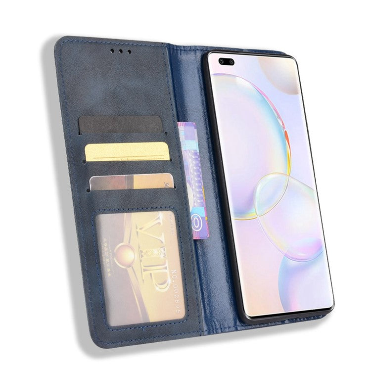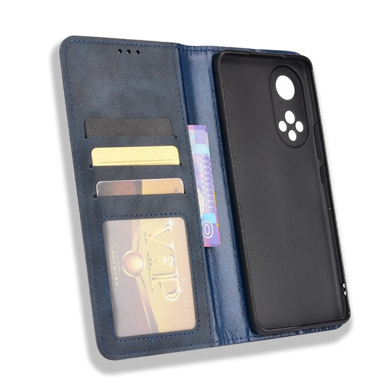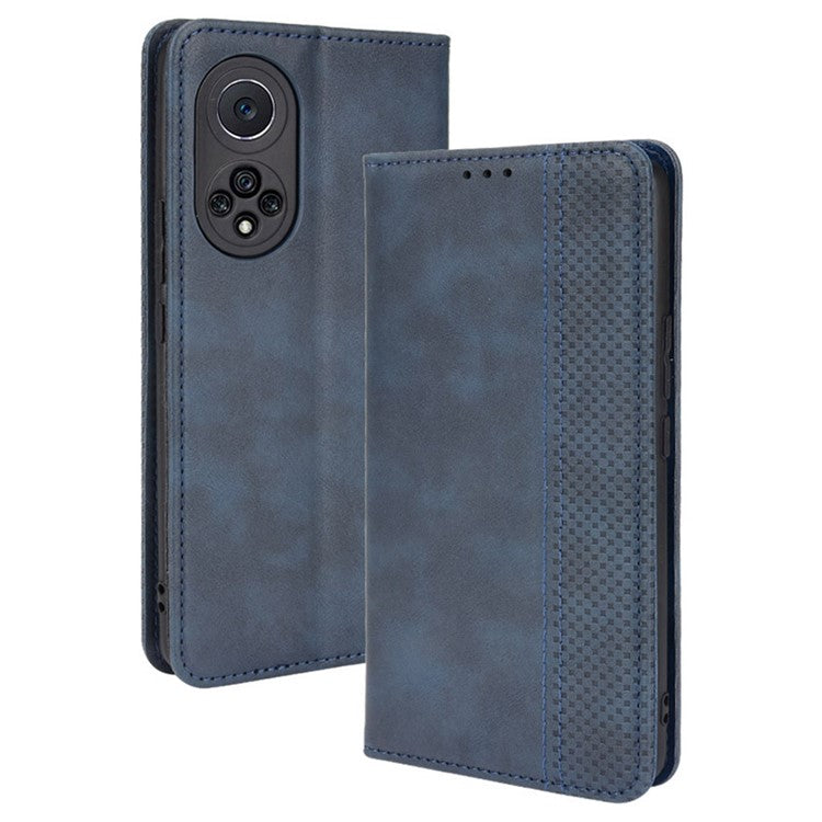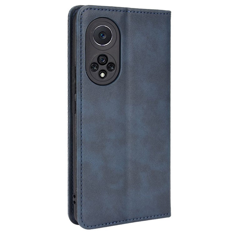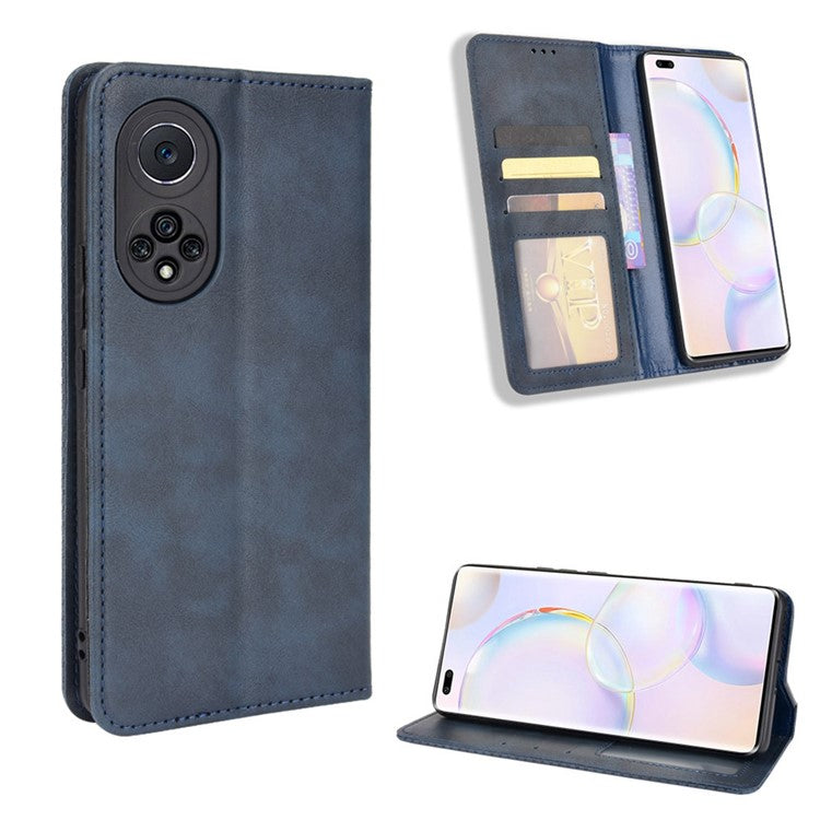 Anti-dust Retro Textured Surface Phone Leather Case Wallet Stand Protective Cover for Huawei nova 9 Pro / Honor 50 Pro - Blue