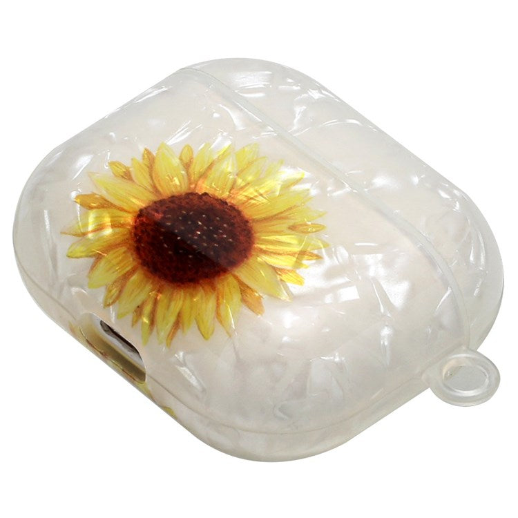 Anti-fall Earphone Case for Apple AirPods 3, Pattern Printed IMD Shell Grain TPU Cover Earbud Protector with Hook - Yellow Sunflower
