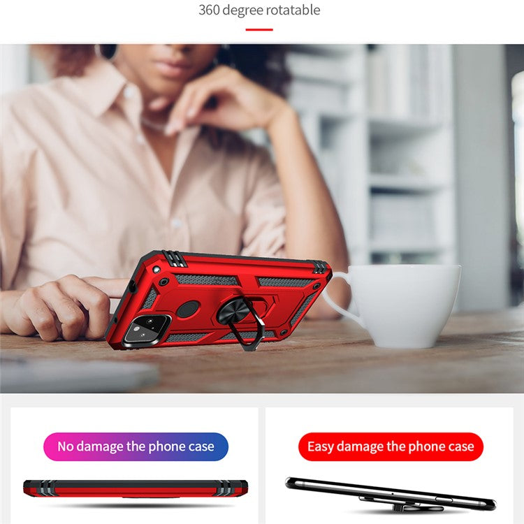 Anti-Fall Hybrid PC + TPU Phone Case Shell with Finger Ring Kickstand for Google Pixel 5a - Red