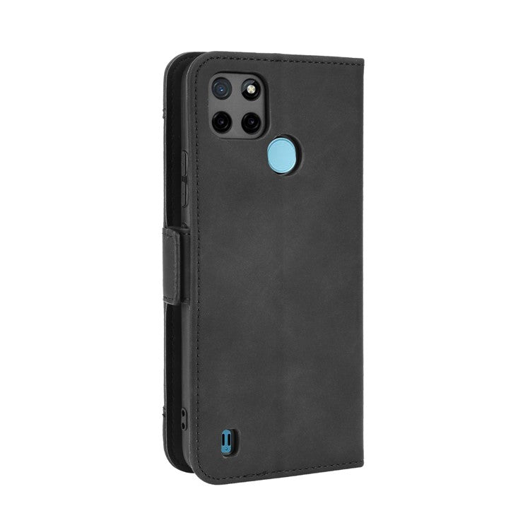 Anti-Fall Shockproof Vintage Multiple Card Slots PU Leather Phone Case Wallet Cover with Stand for Realme C21Y - Black