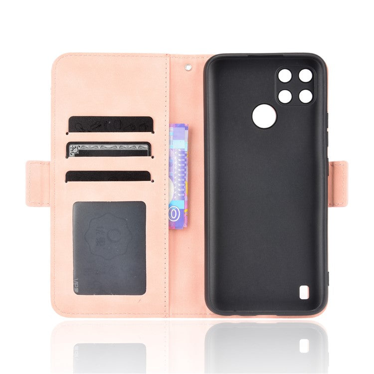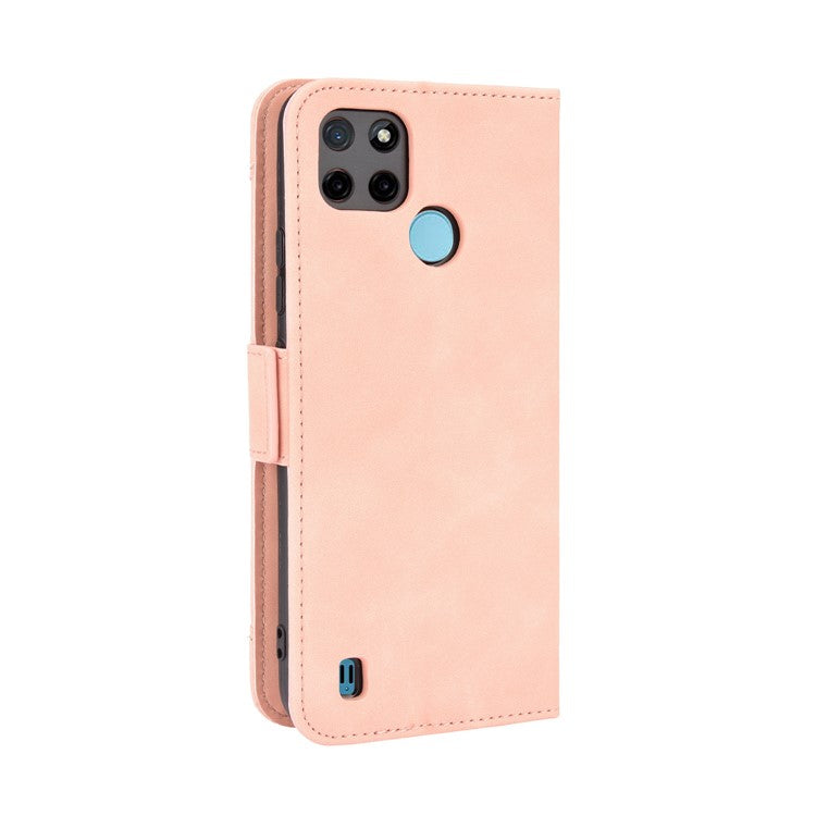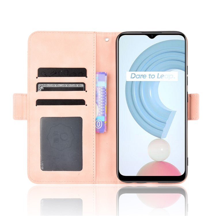 Anti-Fall Shockproof Vintage Multiple Card Slots PU Leather Phone Case Wallet Cover with Stand for Realme C21Y - Pink