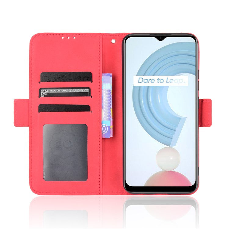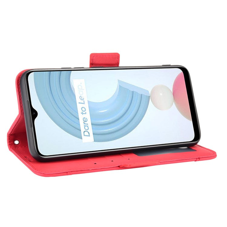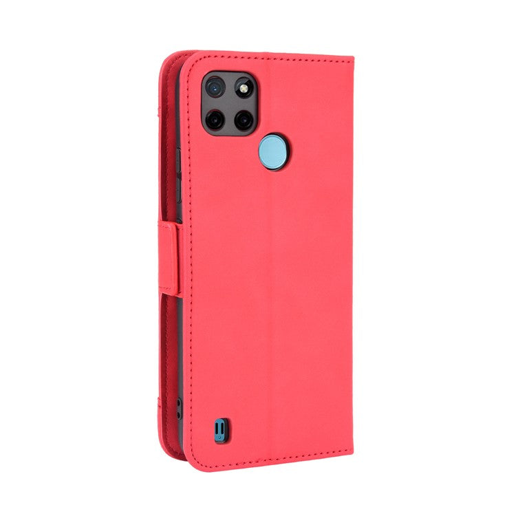 Anti-Fall Shockproof Vintage Multiple Card Slots PU Leather Phone Case Wallet Cover with Stand for Realme C21Y - Red